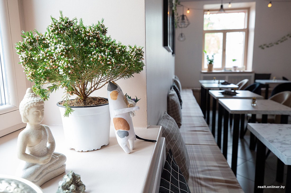 У нас был небольшой цветочный магазин на Притыцкого, а муж всегда мечтал заниматься кофе. Приехали из отпуска в 20-х числах февраля, проходили мимо и увидели, что «Сон Гоголя» закрылся. Освободившееся помещение идеально подходило для нас: как раз разделено на две зоны.