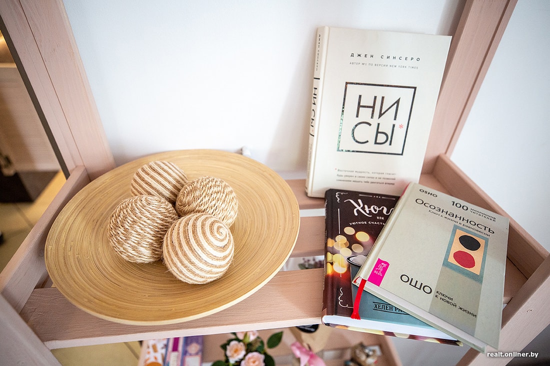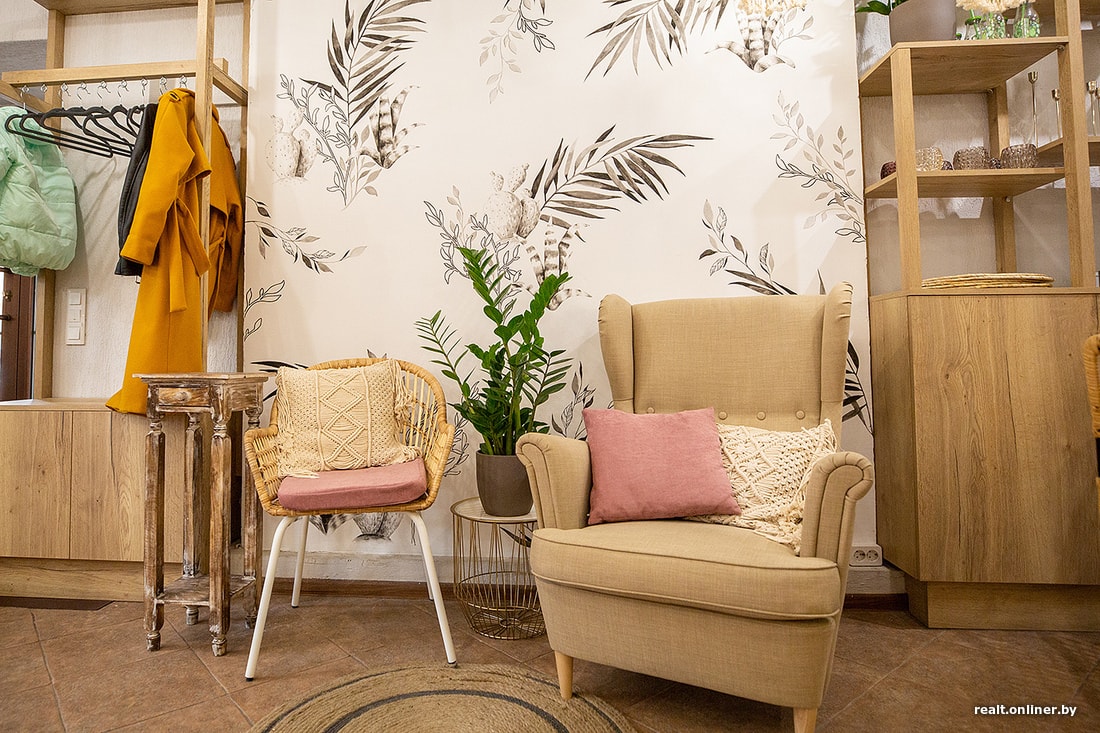 — Почему балийская концепция? Хотелось, чтобы не только в отпуске, но и в Минске можно было побыть в теплой атмосфере, в творческом, самобытном уголочке с плетеными элементами, — объясняет Наталья. — Часть декора сделана своими руками. Что-то привезли с Бали: люстру, чехлы для подушек, плетеные подставки, деревянную посуду, дощечки для десертов, ловцов снов, кашпо для растений.
