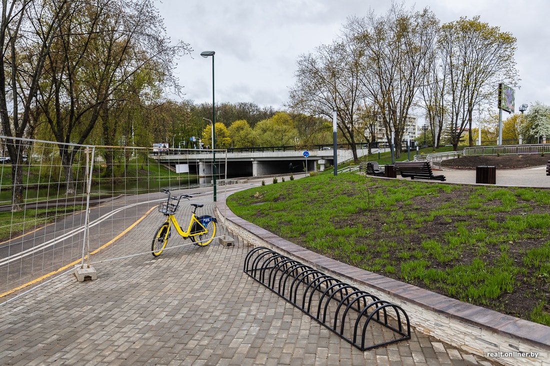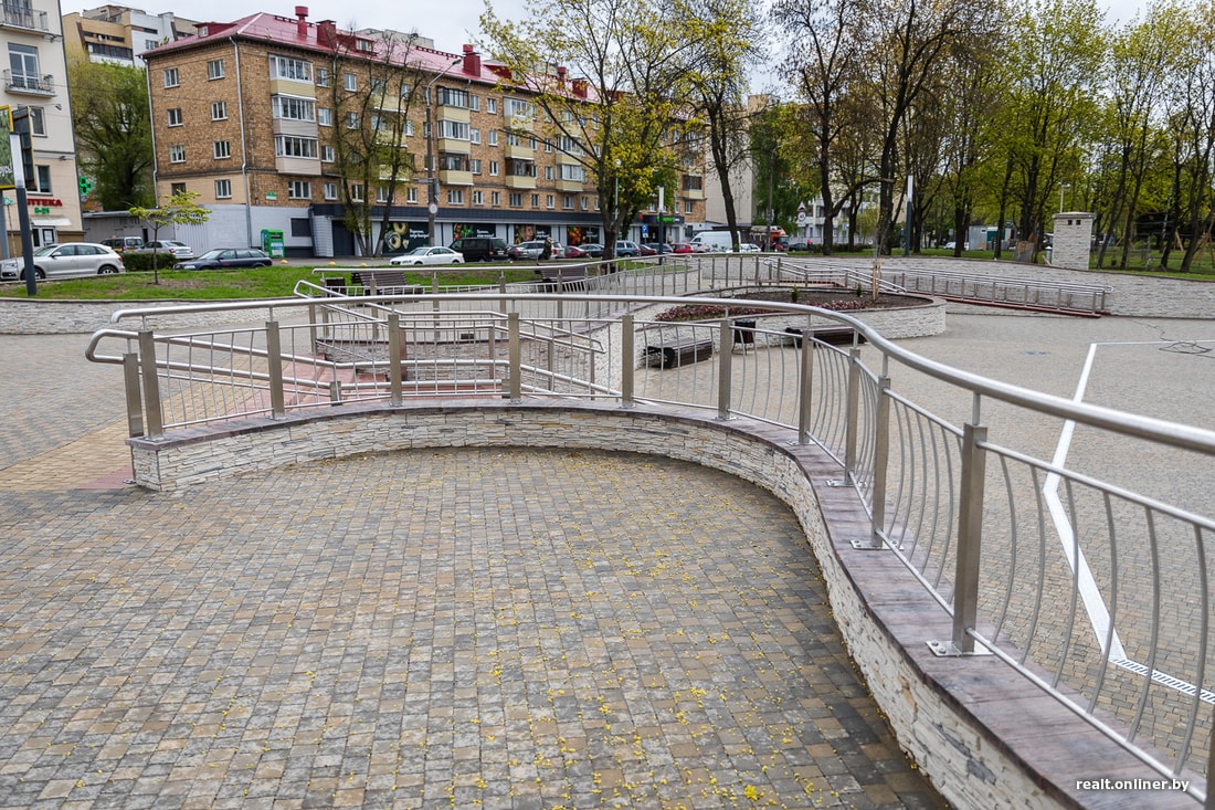 В Минске закончилась реконструкция фонтана на улице Пулихова. Там уже сняли строительное ограждение и явили миру то, что получилось, — эклектичное строение из шести видов плитки и многочисленных заградительных конструкций, велопарковки и модных скамеек. Сегодня, 8 мая, из фонтана начали бить пенные струи, но вместо того, чтобы уходить обратно под землю, вода по ступенькам и велодорожке стекает в Свислочь. Напомним, раньше на этом месте хотели построить культурно-развлекательный центр с рестораном, но проект был встречен протестом местных жителей и экологов. В итоге власти города не стали заключать договор с инвестором и реконструировали фонтан.
