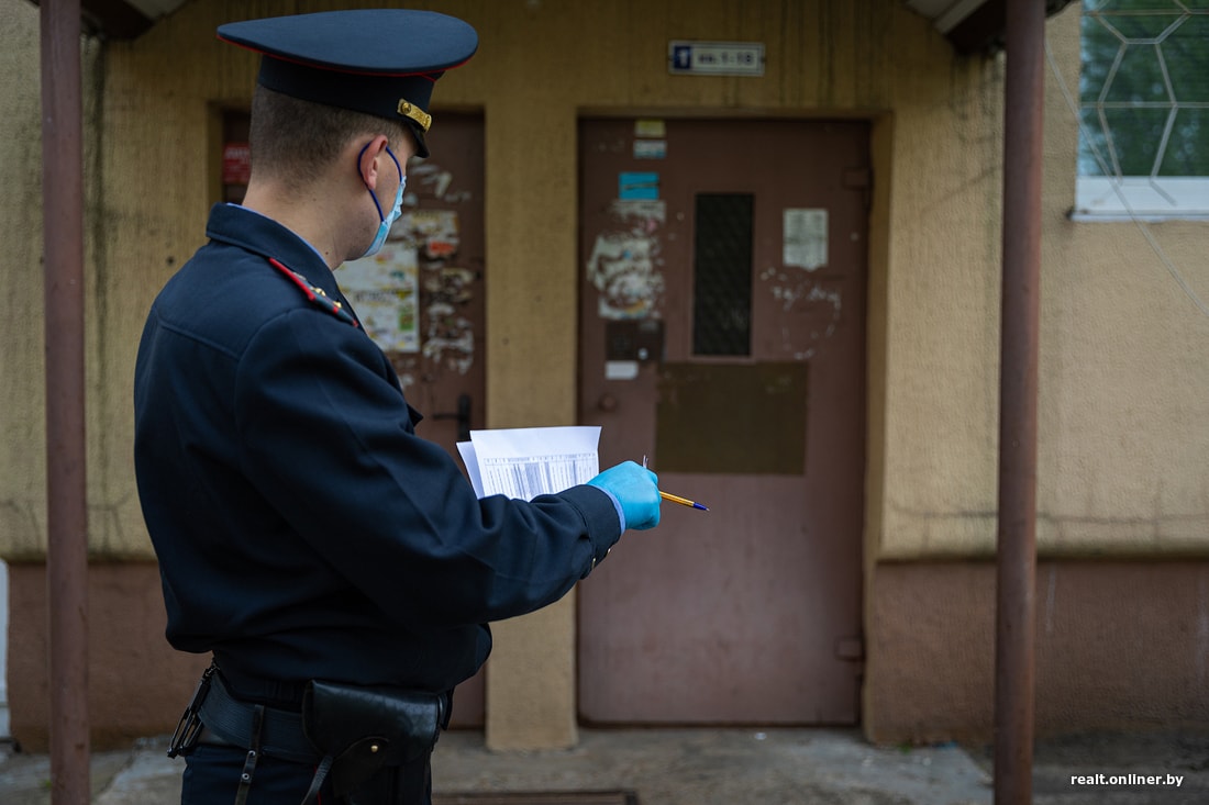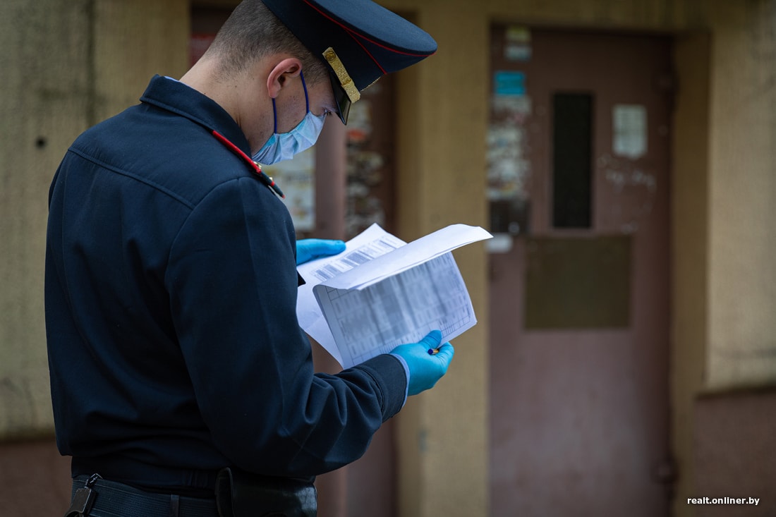 — Количество людей каждый день меняется. У нас с собой списки адресов и людей, которые должны оставаться дома, — рассказывает участковый инспектор милиции ГОМ Ленинского РУВД Минска старший лейтенант милиции Павел Кутис. — Мы можем проверять через домофон, иногда просим показаться в окне, чтобы лишний раз не контактировать. Если в квартире три человека — все трое должны выглянуть в окно. Такие правила.