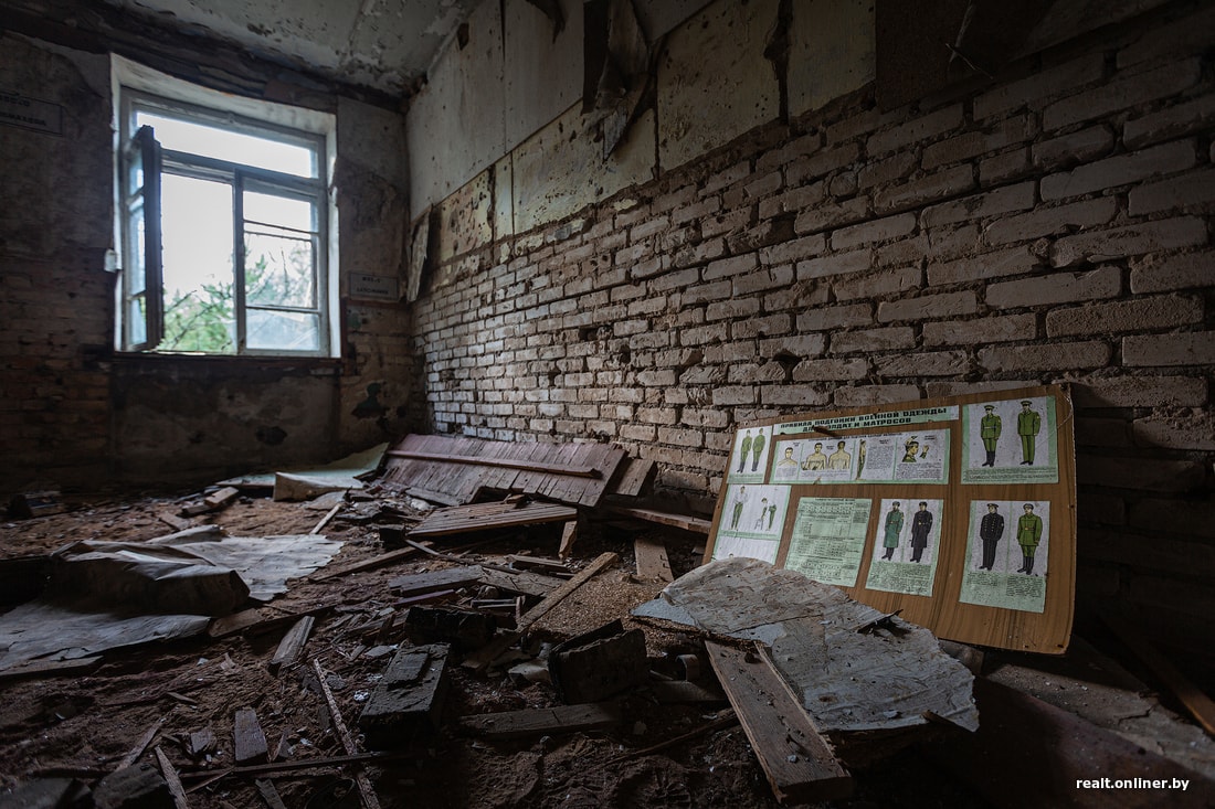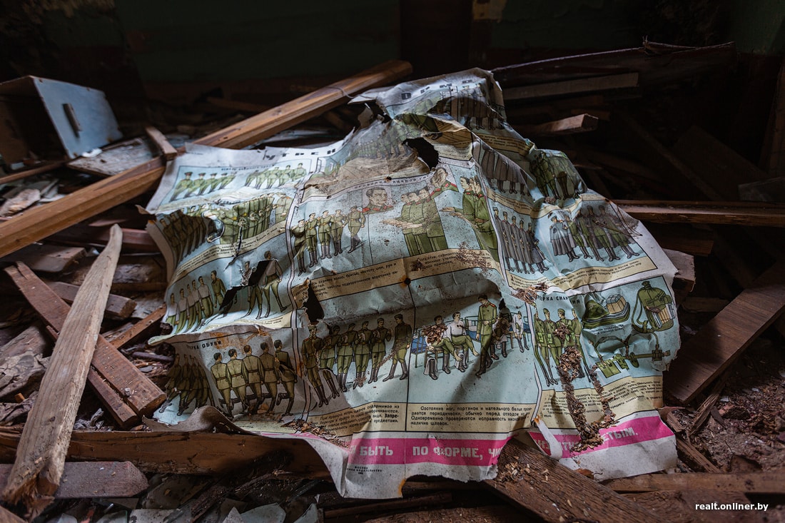 Расформировали полк только в 1990-м. Саму часть после этого так и не снесли. В кабинетах остались детали противогазов и старые стенгазеты, в столовой сохранились упаковки от советских продуктов, а на стенах застыли рисунки и плакаты, отражающие суть тех сложных времен. Сегодня взглянуть на все это может каждый.