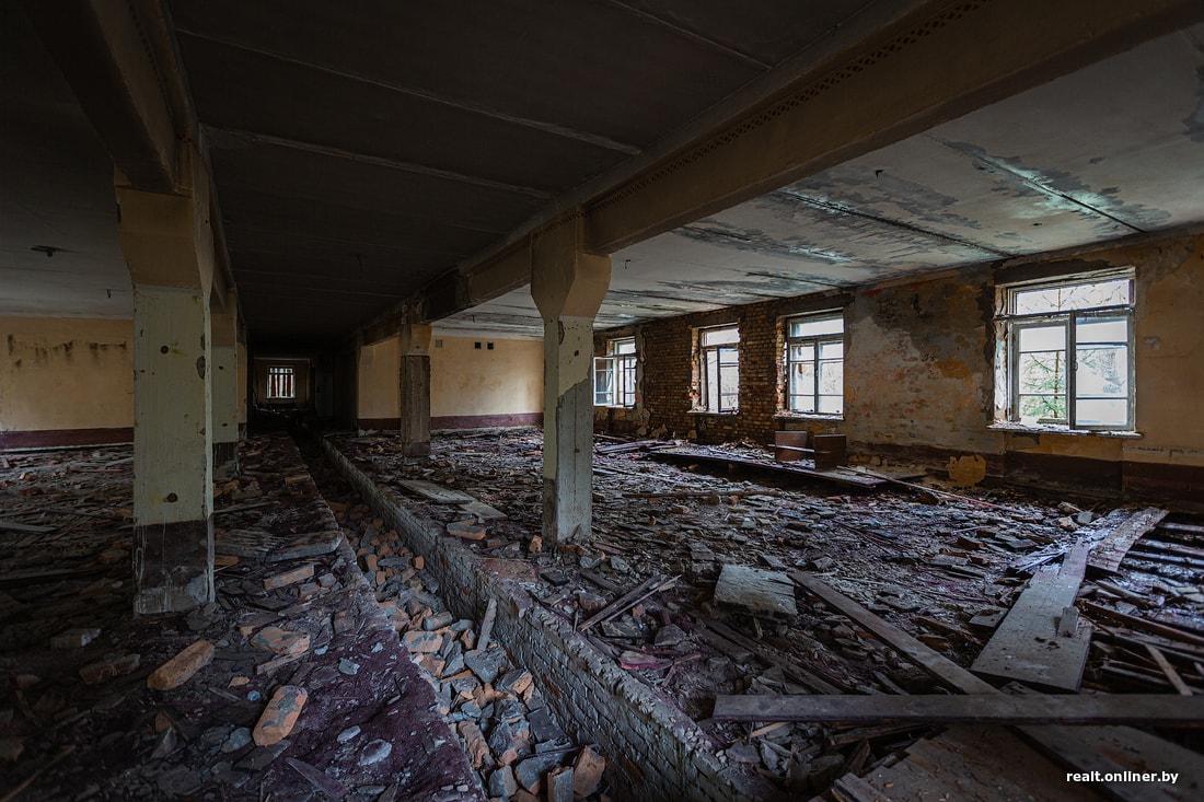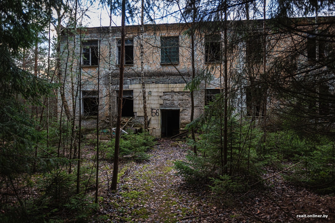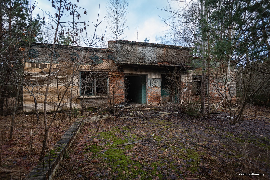 Из-за беспрепятственно разрастающихся кустов выглядывают кирпичные и деревянные здания. Земля перед ними изрыта так называемыми металлистами, которые когда-то активно орудовали в подобных местах.