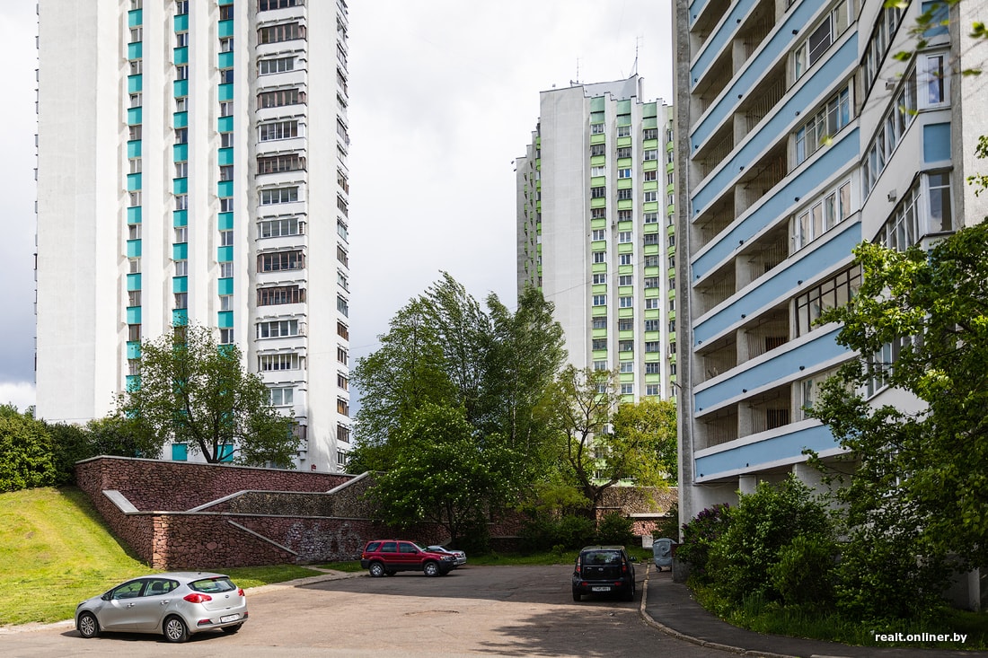 Новаторство микрорайона заключалось и в том, что именно здесь начали возводить первые в Минске монолитные дома. Как вам — 16 этажей, 64 квартиры, улучшенный проект и все это в 1973 году на улице Славинского?