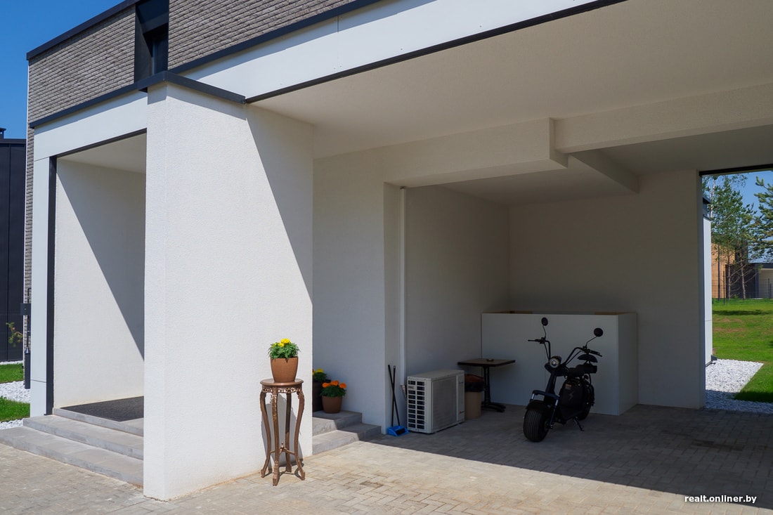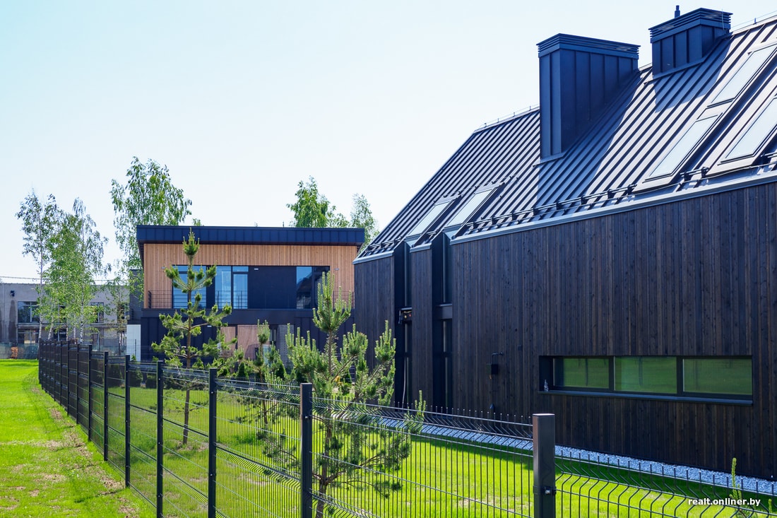Загородная жизнь в Беларуси — это максимальное разнообразие форм, цветов и размеров. Единых требований к усадебной застройке как не было, так и нет, поэтому, когда заезжаешь в любой поселок, глаза разбегаются: тут тебе и дворец, и стеклянные кубики, и даже срубы. В новом жилом комплексе решили пойти другим путем, разработав три основных типа домов (каждый из них может иметь модификации — размер террасы, автомобильного навеса, планировочное решение и т. д.). Грубо говоря, это белые лаконичные кубики, брутальные темно-серые коттеджи и уютные дома, в оформлении фасада которых использовалось дерево.