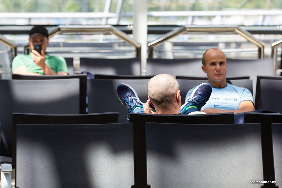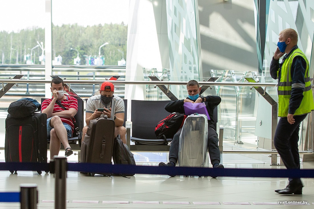 — У нас это первый рейс после карантина, мы очень рады, что авиасообщение есть хотя бы в Минске. Нас, как моряков, это очень радует, столько без работы сидели: кто три, кто четыре месяца. Доехали до Минска из Украины без проблем, показали документы, что у нас нет COVID-19, едем работать на пароход. У нас будет полугодовая самоизоляция, — шутят мужчины. — До этого кто сколько без работы сидел: три, четыре, семь месяцев.