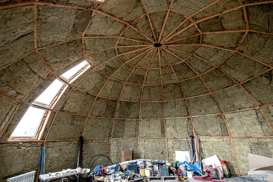 При выборе материала Анатолий, напротив, пошел традиционным путем. По его словам, в Беларуси купольные дома строят из пенопласта, бетона, соломы, но бетон — это дорого и массивно, к пенопласту нет доверия, да и солома вызывает скепсис, чем бы она ни была пропитана. В общем, минчанин отбросил все экзотические идеи и выбрал дерево.