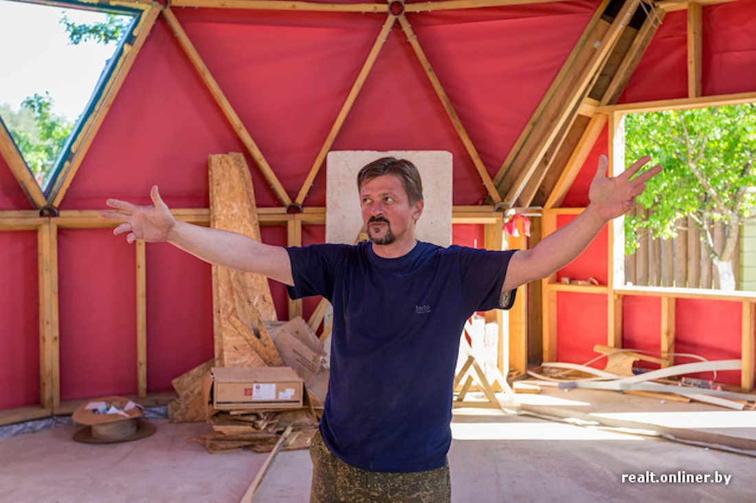 Тогда я понял, что индустрия купольного строительства у нас совсем не развита. Прочитал статью о женщине, которая построила дом-купол в Минской области, нашел ее и съездил в гости. Наверное, достал ее своими вопросами. Свой дом она построила слишком дорого, потому что ей пришлось обратиться к специалистам, которые, видя что-то нестандартное, загибали ценник.