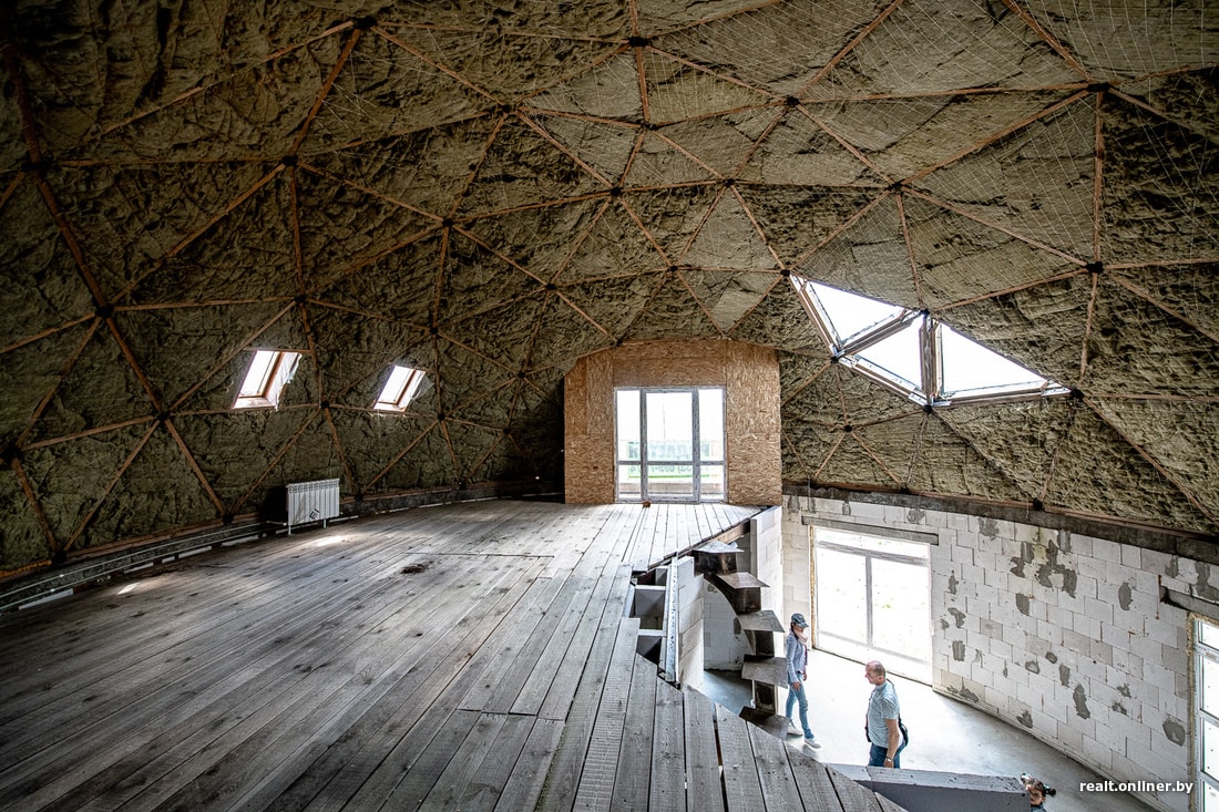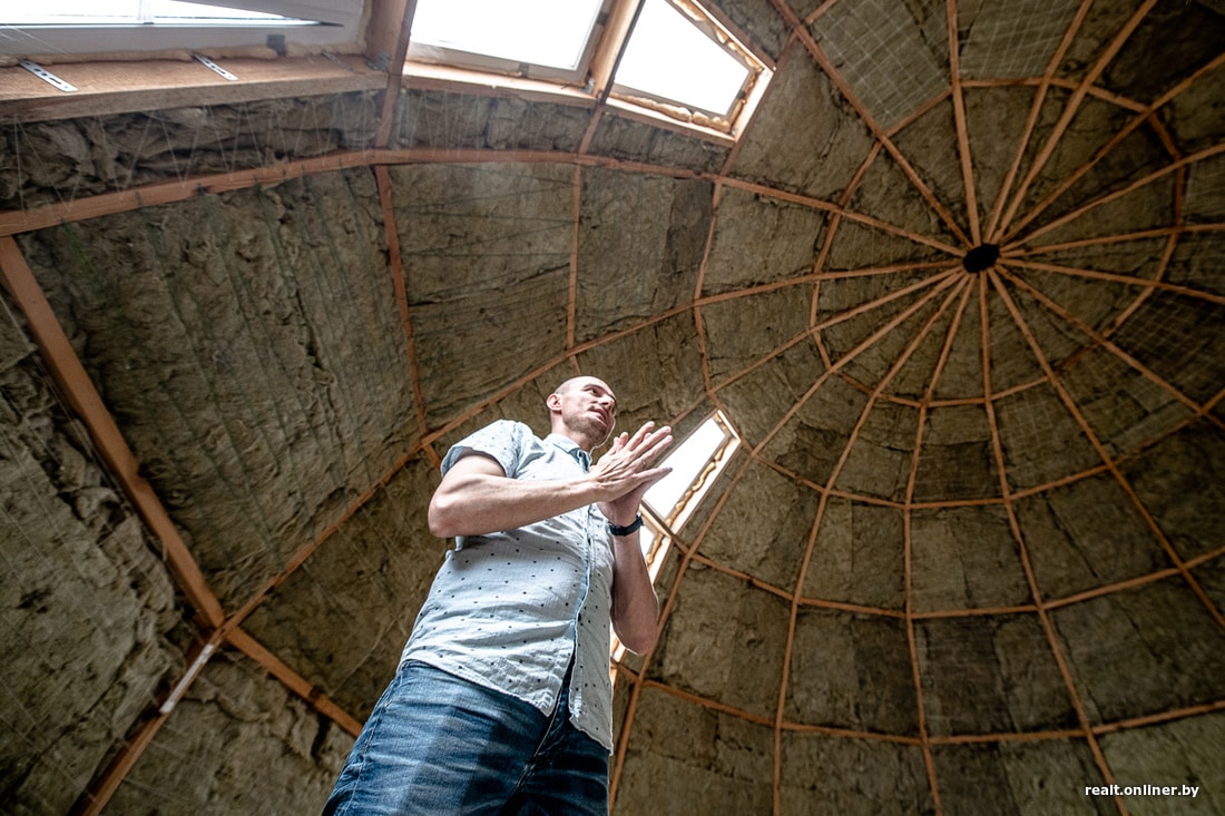 — Утром приезжал сюда, а вечером возвращался обратно в Минск к семье. Вчера ради интереса прикинул, сколько денег потратил на бензин, — оказалось, порядка 3200 рублей за год езды туда и обратно. Даже стеклопакеты весом 90 кг устанавливал вместе с помощником, вися на тросах под куполом. Иногда за шашлык и пиво помогали друзья. Единственная работа, к которой я не прикасался, — это отопление, потому что ни черта в этом не понимаю.
