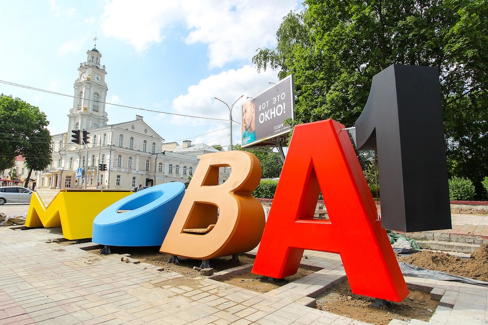 Примерно каждые десять дней в областных центрах Беларуси (поочередно) происходит событие, которое привлекает взгляды прохожих и оживляет беседы в местных пабликах. На значимых улицах городов рабочие устанавливают яркие арт-инсталляции, которые не только являются «народными» скульптурами (на них можно сидеть-лежать), но и образуют слово «Мова». Рассказываем, что это за проект и где именно в Минске расположится инсталляция.