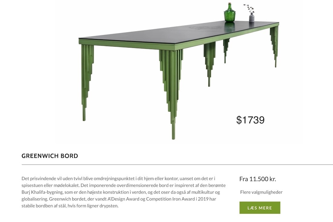Цены на продукцию Black Owl для датчан вполовину выше, чем для белорусов, ведь приходится тратить деньги на доставку и растаможку. Например, кресло Bruk в Дании стоит порядка $2000, стол Greenwich длиной 2,5 метра — около $1700.