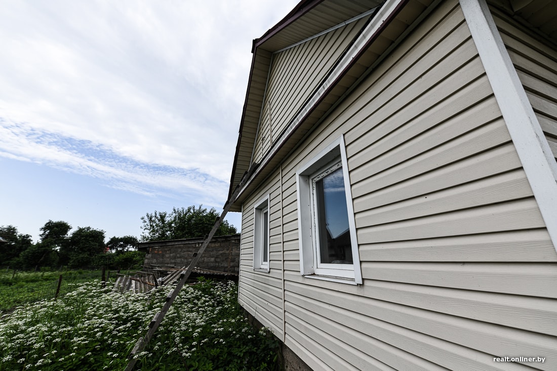 Дом разделен на две части. Владельцы второй квартиры когда-то обшили фасад бежевым сайдингом, так что снаружи домик выглядит поприличней. Во дворе сарай, огород, бодрая дворняжка, которую старики когда-то спасли от смерти и приютили.