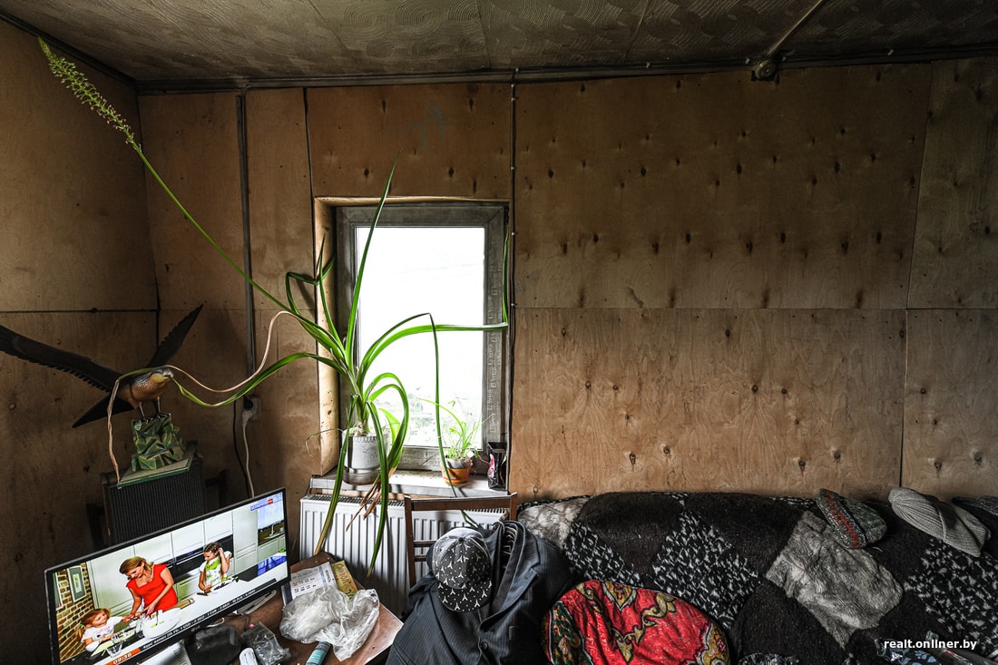 — Не, мы в Минске жили, у нас там квартира. Я бухгалтером работала, а Леня заместителем главного энергетика. А теперь нас из-за заразы в Минск не пускают. Так то за продуктами, то за лекарствами, то в ванную ездили. А теперь и ноги перестали ходить, так что не вылазим отсюда, — говорит Лилия.