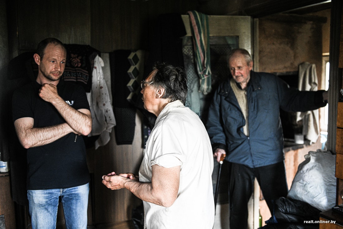 — В Минске живет дочка с семьей и детьми, они туда ехать не хотят. Раньше они наездами там были, но последние годы живут только здесь. Дочка им помогает как может: продукты привозит, лекарства и так далее. Но привести дом в порядок у них возможности нет. Я, честно говоря, даже не думал, что люди могут так жить. Это же кошмар! Заходите внутрь, сейчас поймете, — говорит Максим и открывает калитку.