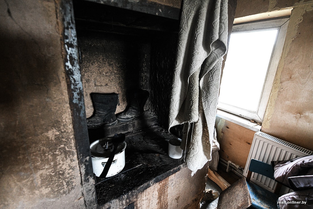 Это не самый запущенный дом, в котором нам приходилось бывать, — некоторые живут и похуже. Хозяева не похожи на маргиналов и алкоголиков — обычные белорусские старички с кучей болячек и маленькой пенсией. У них есть квартира в Минске, дача где-то недалеко и половина дома, у входа в который мы и стоим. Но обстоятельства складываются так, что жить они вынуждены именно здесь, в Моторово.