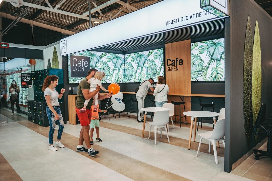 Из 6800 кв. м площади торгового центра гипермаркет Green занимает 2065 кв. м. Кроме него, в «№1» уже работают магазин бытовой химии «Остров чистоты», магазин техники для кухни Ono.by, магазин игрушек и детского спортинвентаря «Граф Жираф», сеть дискаунтеров «Три цены», отделение A1, магазин косметики и бытовой химии «Мила», «Белита Витэкс» и другие. А через 6 дней откроется первый развлекательный объект — батутный центр на 250 кв. м, который так и называется «Батутный центр».