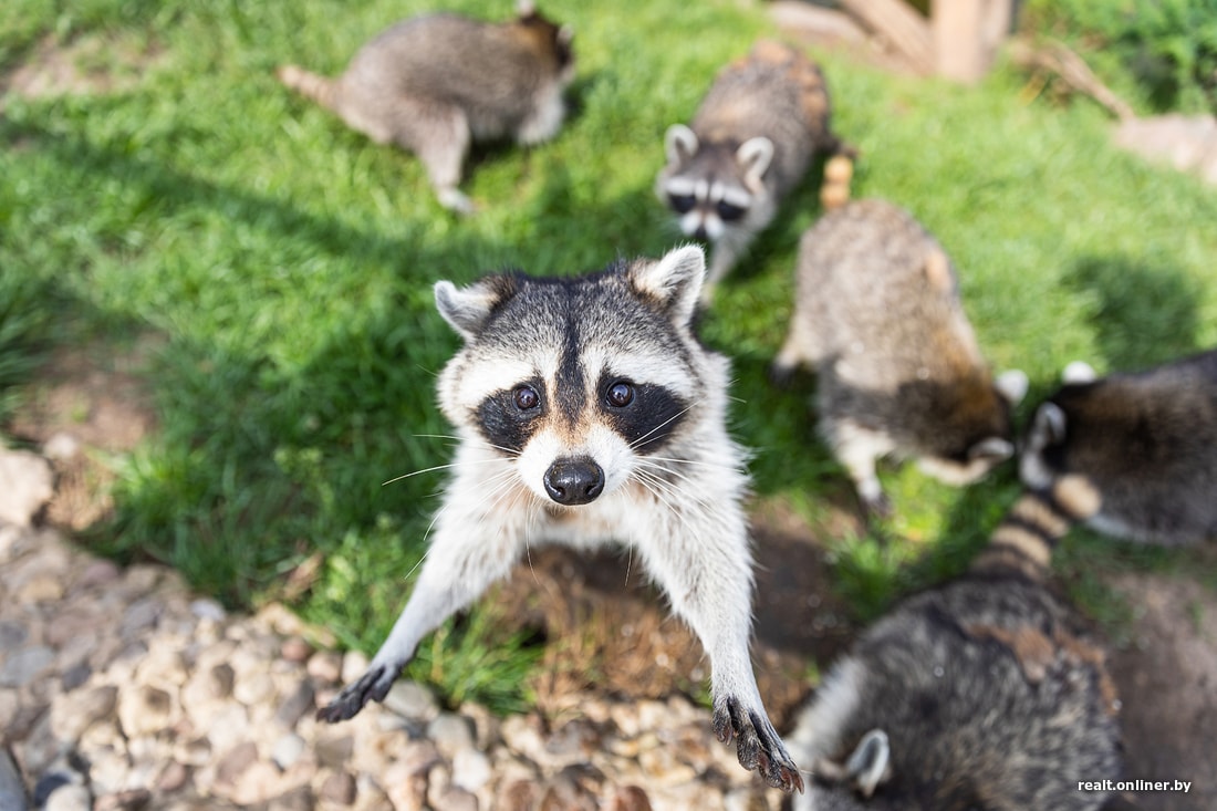 Еноты с собственным озером, длинноногий патагонский заяц, молодая лосиха, обезьянки всех мастей, кенгуру, птицы. Милота просто зашкаливает, тем более что и места пернатым, а также пушистым хватает (сердце за них не болит): у всех есть как открытые вольеры, так и личные домики, где можно укрываться от непогоды.