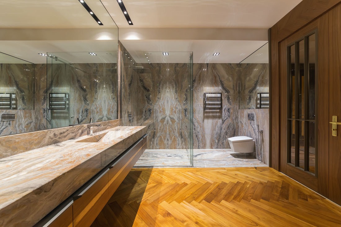 То же самое с дизайнерами. Наша задача — не мебель подобрать, а продумать все технические детали, грамотно распорядившись бюджетом заказчика. Например, у нас есть опыт работы с натуральным камнем, благодаря которому мы можем грамотно его развернуть, сделать цельный рисунок, чтобы интерьер выглядел гораздо дороже.