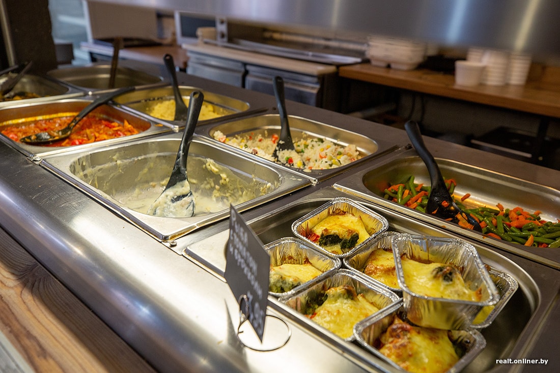 Предлагается простая, понятная еда. Выглядит аппетитно. Цены на старте удивляют: если долго ходить по кафе и ресторанам Минска, в первый момент салат за 80 копеек покажется утопией. Но столовая на то и столовая, чтобы делать еду за честные деньги.