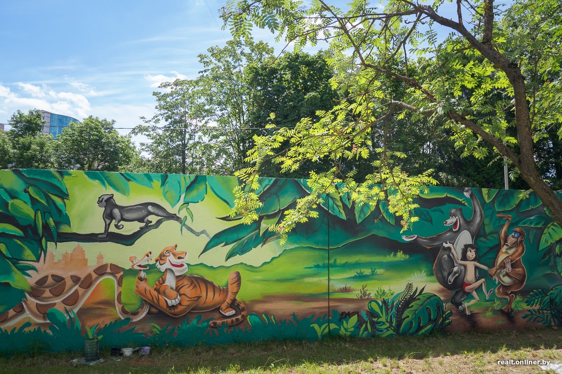 В основном, на заборе изображены герои мультфильмов  – Незнайка, Маугли, Волк и Заяц из «Ну, погоди!». Возможно, покажется странным, но многих из них дети даже не знают.