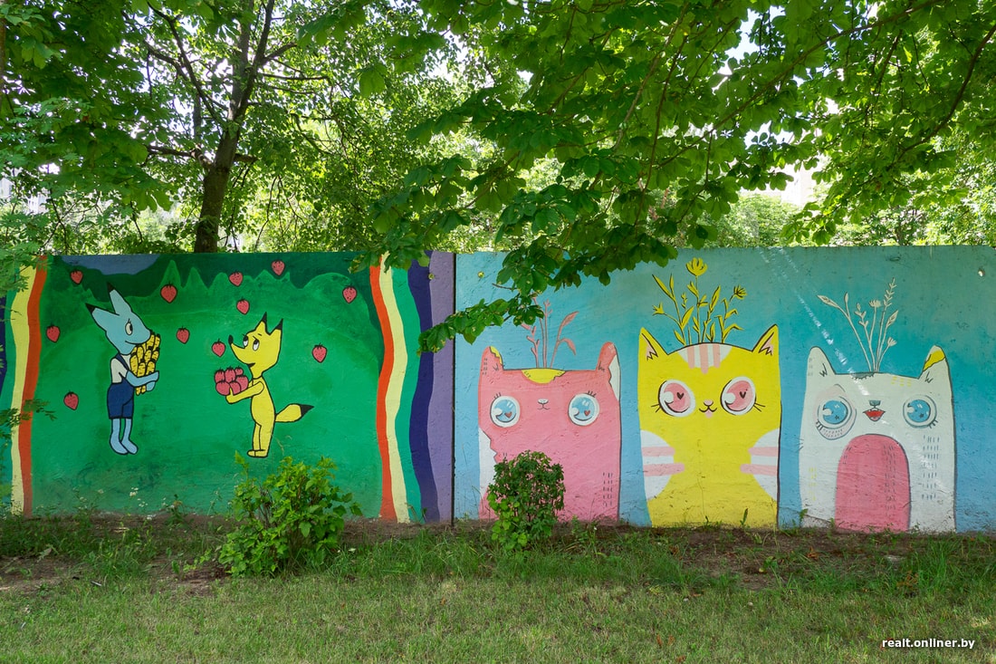 Дом ребенка №1 в Минске, где больше половины воспитанников — с органическим поражением центральной нервной системы и психики, появился в жизни пары совершенно случайно. Проходя мимо, Елена решила узнать, нужна ли ему какая-то помощь. Оказалось, нужна. Тогда все и завертелось. В конце концов пара пришла к идее разрисовать старый забор, чтобы облагородить пространство, да и просто детей порадовать.