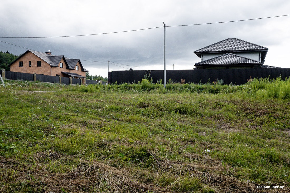 Стартовая цена лота — 80 000 полновесных белорусских рублей (на сегодняшний день это примерно $33 500 по курсу, что составляет половину стоимости хорошей «однушки»). По нашим впечатлениям, участок довольно приятный: без уклона, немного на отшибе, вокруг деревья-елочки. Закаты, опять же, красивые.
