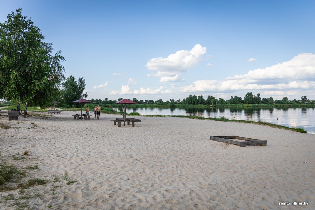 В районе Лясковичей есть несколько диких речных пляжей, но мы рекомендуем выбирать для отдыха благоустроенные места со станциями ОСВОДа (все же с течением лучше не шутить). Хороший пляж на Припяти в Петрикове. Есть водоем с приятным пляжным песком и детским лягушатником в Житковичах. Расстояние до обоих городов одинаковое — 24 км.