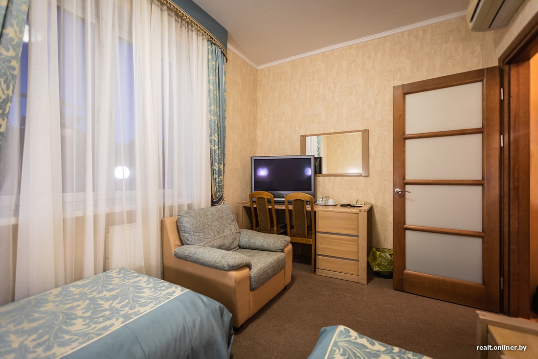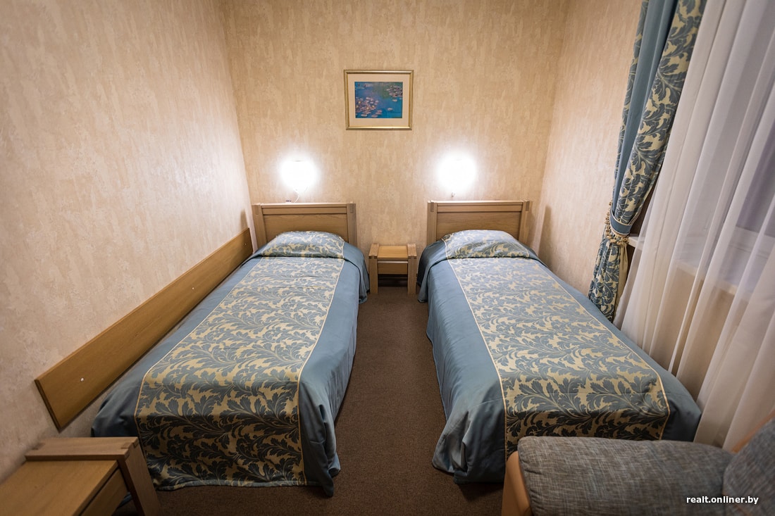 Стандартный двухместный номер в гостинице «Над Припятью» в центре Лясковичей обойдется в 115,8 руб. В эту цену включен завтрак в ресторане, который работает при гостинице. Комплексный обед здесь стоит около 7 рублей.