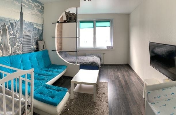 В 7 км от Минска, в агрогородке на берегу Птичи, вас ждет однушка с видом на Большое яблоко. Современный ремонт, свое отопление, вода из артезианской скважины, до горячего состояния ее подогревает котел, поэтому, как пишет собственник, «никаких страданий от двухнедельных отключений». Мебель и технику по договоренности вам могут оставить. Громко топающих соседей сверху нет: все-таки последний этаж. До Минска можно добраться на нескольких автобусах и маршрутках. Рядом озеро, река, парк, лес и исторические достопримечательности. И никаких заводов. Цена — $46 500 по курсу.
