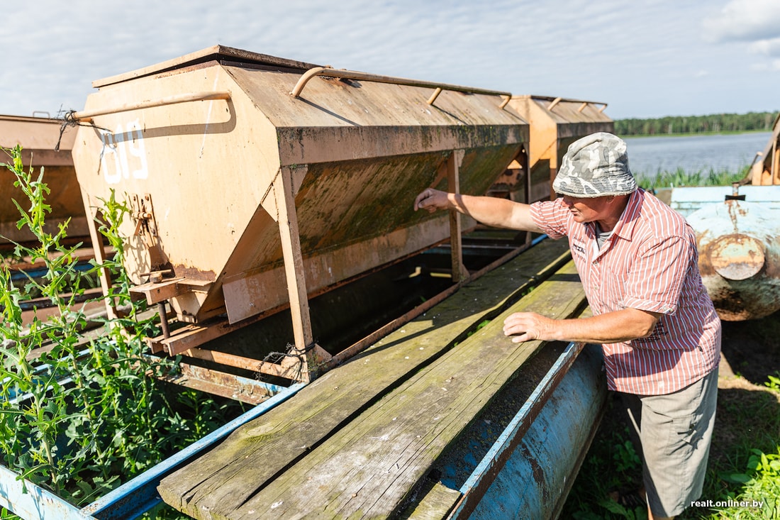 — Канал наш идет аж до Минской области. Мы искали, где он кончается, но так и не нашли. Решили, что с лесов-болот идет. По бумагам до Михайловска, а дальше куда — никто не знает: документы давным-давно никто не видел. И входа к реке мы не нашли. А канал этот делался еще в 30-е годы, когда наш рыбхоз был создан, и с тех пор все так и работает, ничего нового мы не придумали, — говорит нам рыбовод Алексей, работающий главным инженером в рыбхозе.