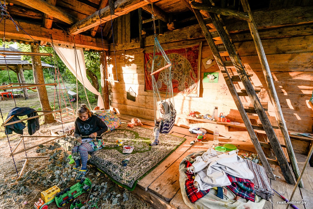 Ирен и Кирилл называют свой хутор экопоселением. Его обитатели объединены общими идеями и ценностями и организуют быт так, чтобы оказывать на природу минимальное влияние, используя возобновляемые ресурсы и давая ей больше, чем забирают. Чырвоны Кастрычнiк, пока единственный в Беларуси, является частью Глобальной сети экопоселений. С новыми для нас, но никак не для всего мира веяниями они знакомят и своих гостей: например, учат экостроительству. Вообще, ремонт здесь не прекращается уже 9 лет. В былые времена семья зарабатывала на него гончарством. С первой своей ярмарки они привезли $1000 и подумали: вот это класс, давай делать еще! Потом все скатилось к тому, что денег хватало только на еду и бензин, а на стройку нет. Тогда Кирилл занялся производством высокотемпературных муфельных печей. До сих пор в этом деле. Значительную часть выручки по-прежнему вкладывает в развитие Кастрычнiка.