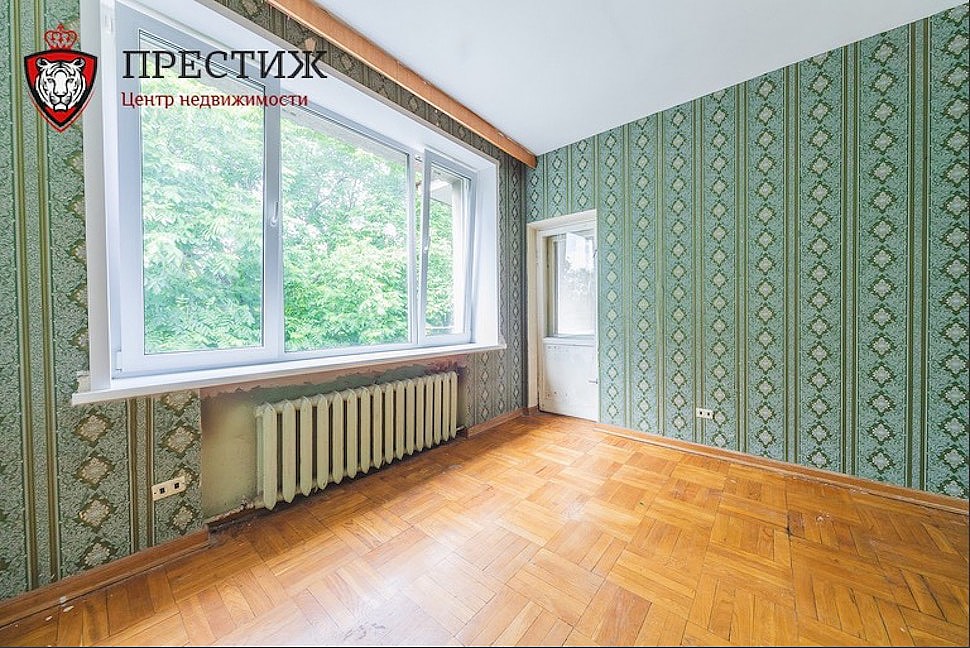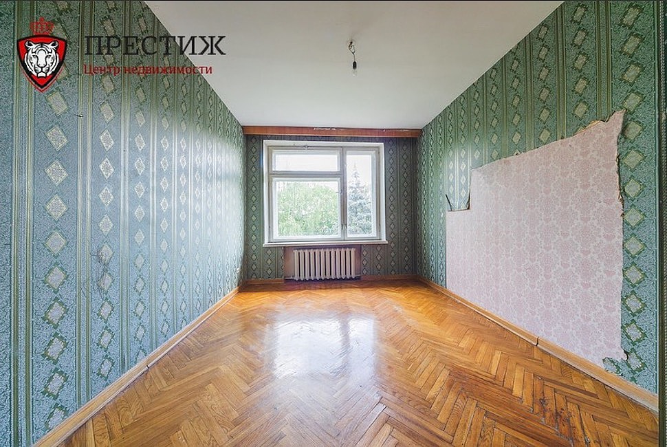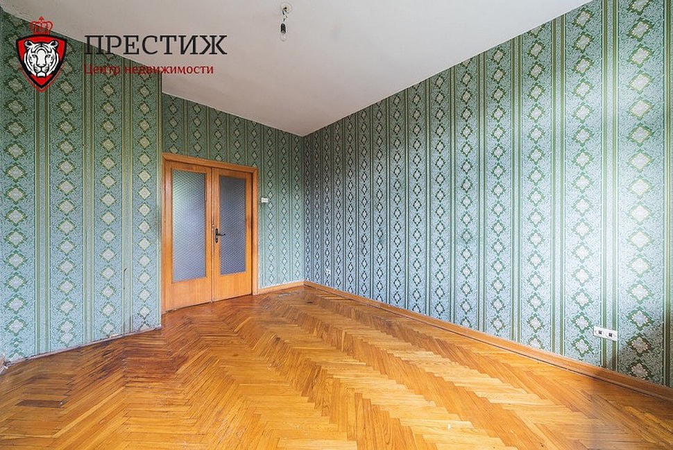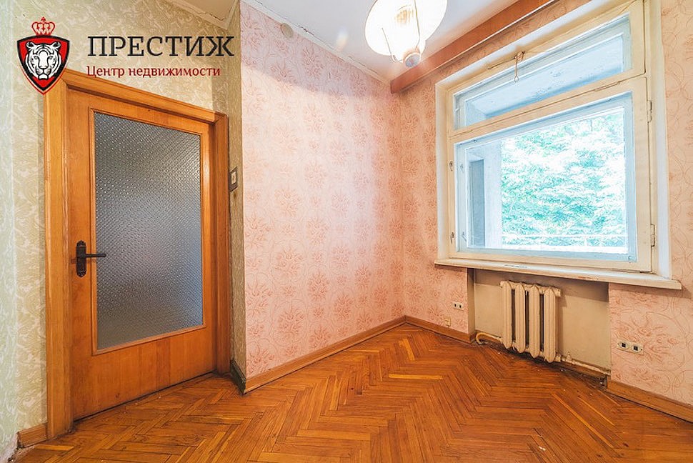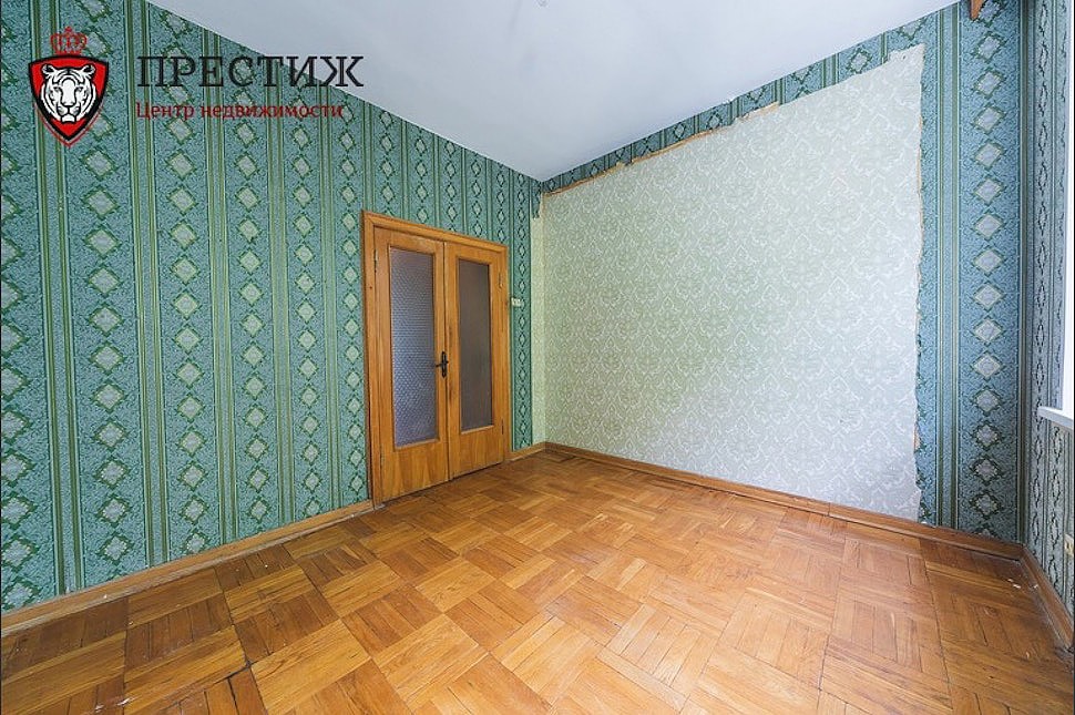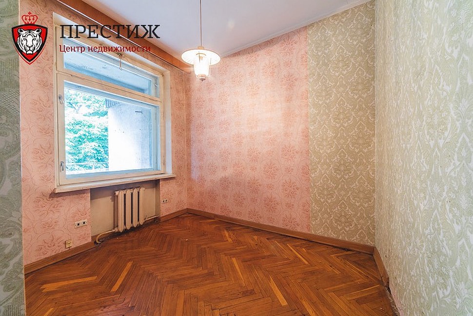 Квартиры на продажу в таких домах появляются нечасто: далеко не каждый захочет расстаться с недвижимым сокровищем, пусть и за большие деньги. Но нам повезло, поэтому можно заглянуть внутрь. Неизвестно, кому именно принадлежало это жилье, но видно, что ультрамодный ремонт сделать в «четырешке» не успели. Душа не уничтожена, а значит, на месте паркет елочкой и квадратиками, деревянные оконные рамы, чугунные батареи, старые двери и такие же обои. Причем сразу видно, где в квартире стояли шкафы — с одеждой, книгами. Когда-то тут явно была обширная библиотека.