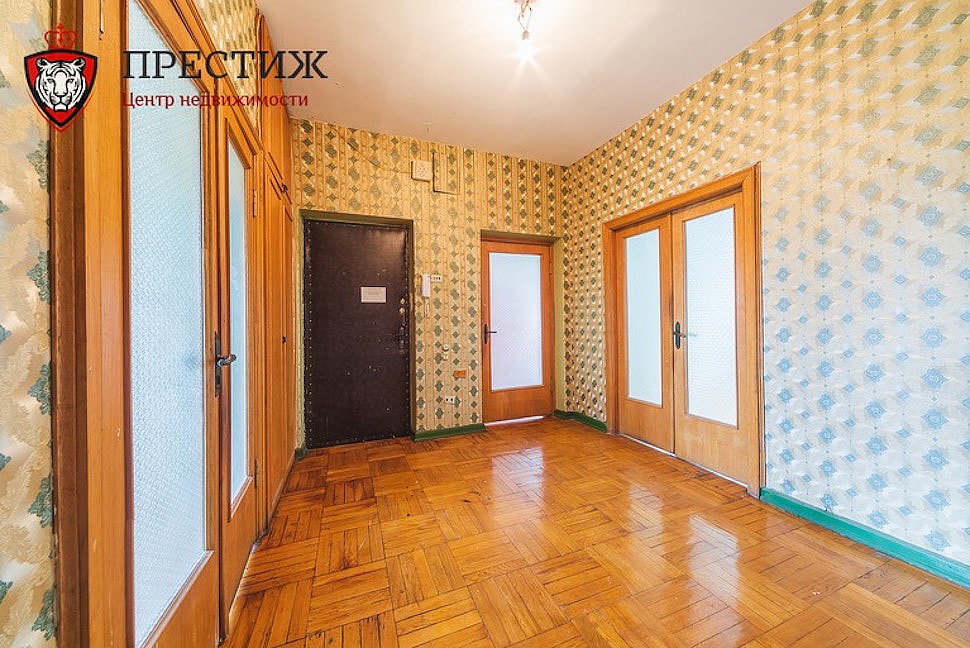 Продается по-настоящему элитная квартира, расположенная на последнем этаже, за 607 410 рублей, или $249 000, что в пересчете на один квадратный метр дает примерно $3190. А ведь еще и ремонт надо сделать. «Подъезды сквозные с оригинальными дверями снаружи (деревянными с остеклением) и безопасными внутри (металлическими с домофонами). Уютный и большой двор-сквер огорожен забором, есть шлагбаум. Респектабельные интеллигентные соседи», — дополняет характеристики агентство, занимающееся продажей объекта.