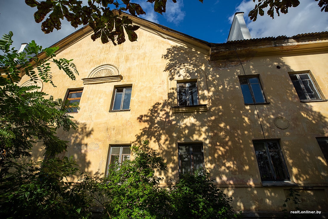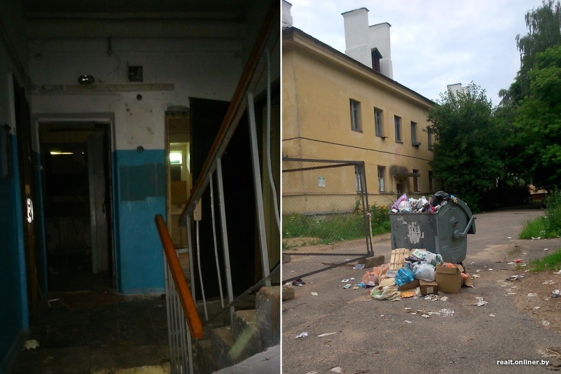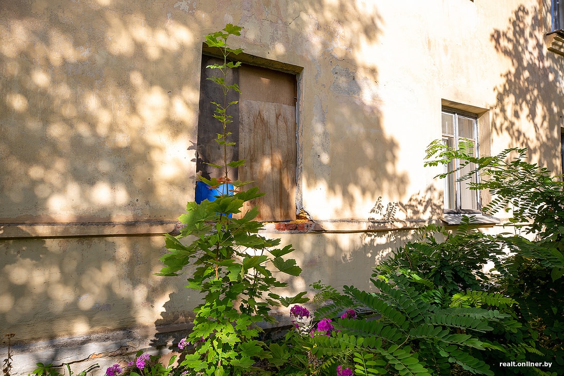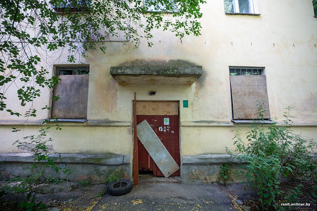 Эта старая двухэтажка находится в центре Минска, среди элитных кварталов и не менее элитных строек. Окна первого этажа забиты фанерой, двор завален подгнившими яблоками, одинокий контейнер переполнен мусором. Кажется, что дом совершенно необитаем. Но если присмотреться, можно заметить на двери подъезда единственное объявление, в котором сказано: «Здесь живут люди!!!» Эти люди стараются не оставлять квартиру пустой, чтобы кто-то всегда мог продемонстрировать свое присутствие мародерам, отговорить их срезать батареи и вырывать доски пола в пустых квартирах по соседству. Каково это — жить в заброшенном доме и как так вышло — в репортаже Onliner.