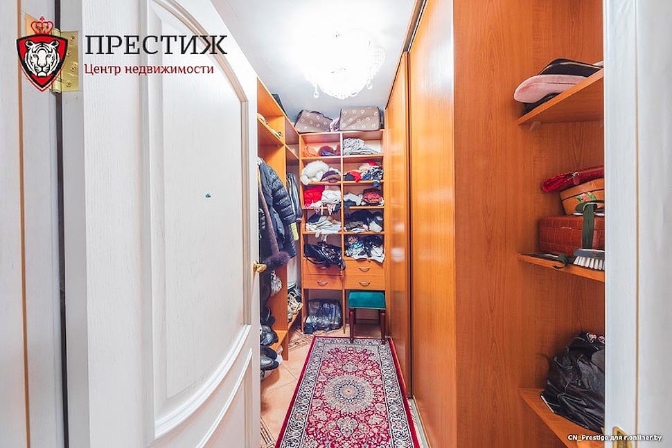 «Предлагается в аренду элитная и уникальная квартира площадью 327 кв. м. Целый этаж в вашем распоряжении! В квартире выполнен качественный ремонт в стиле классика. Удобная планировка: гостиная, объединенная со столовой, кухня с обеденной зоной, 3 спальни, две из которых с собственными гардеробными, кабинет, 4 санузла, сауна, отдельные гардеробные, постирочная и многое другое. Из окон открываются завораживающие виды на парковую зону и реку Свислочь. Квартира ранее не сдавалась. Частично мебель будет заменена на другую», — предупреждает агентство, занимающееся «пристройкой» жилья в добрые и платежеспособные руки.