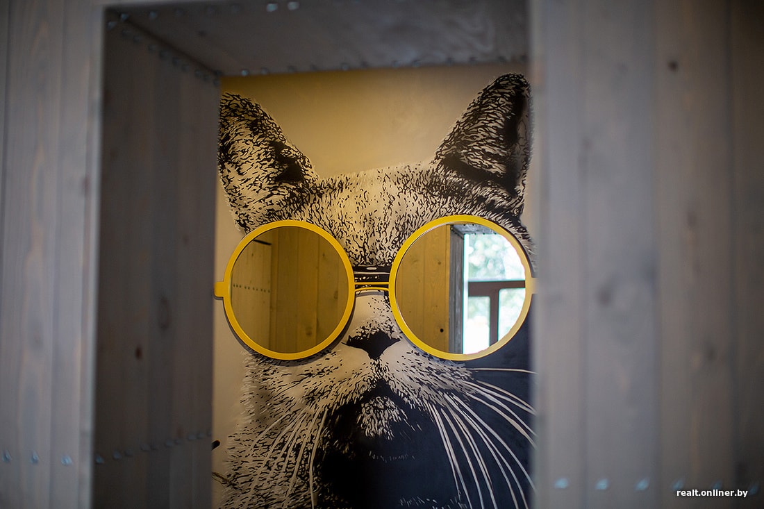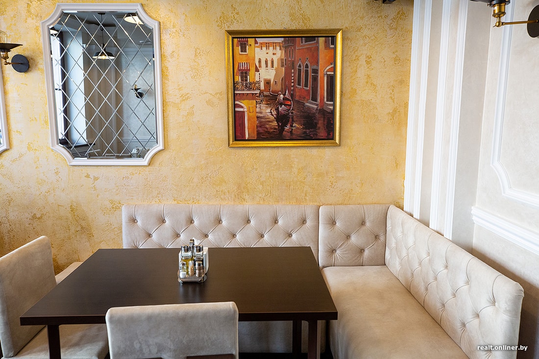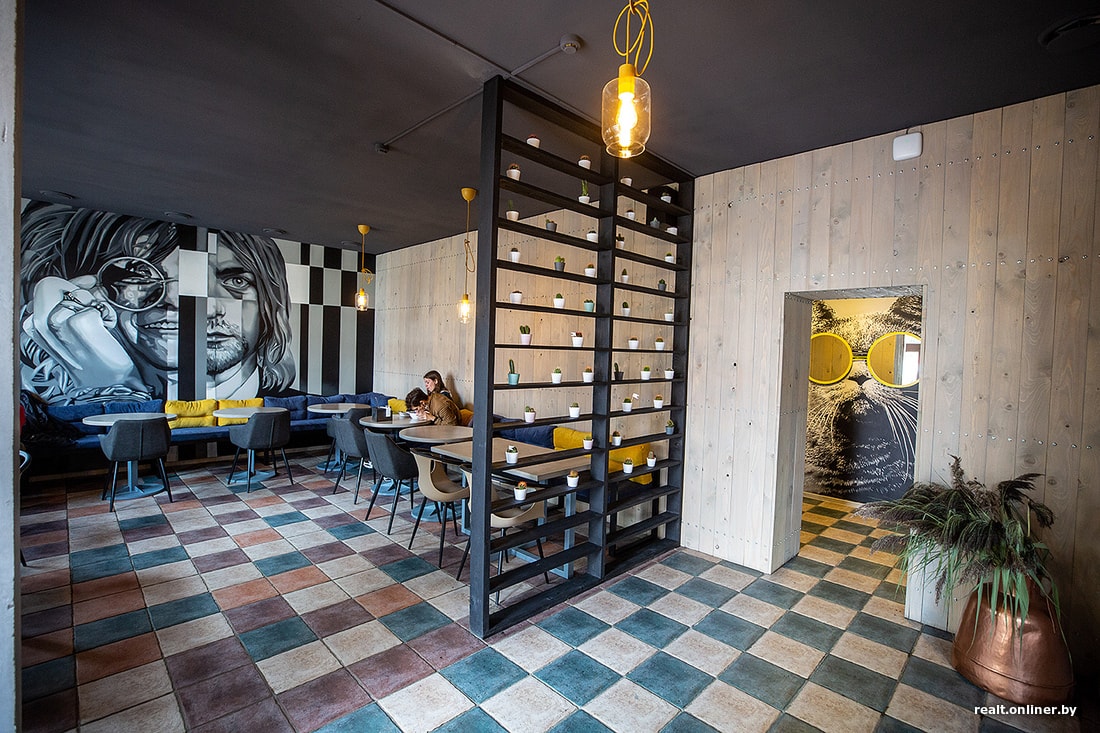 — В стилях я не очень разбираюсь: интерьер получился в стиле лофт, минималистичный. На одной из стен сделали репродукцию работы известного современного художника. У меня давно была мечта нарисовать ее в одном из заведений.