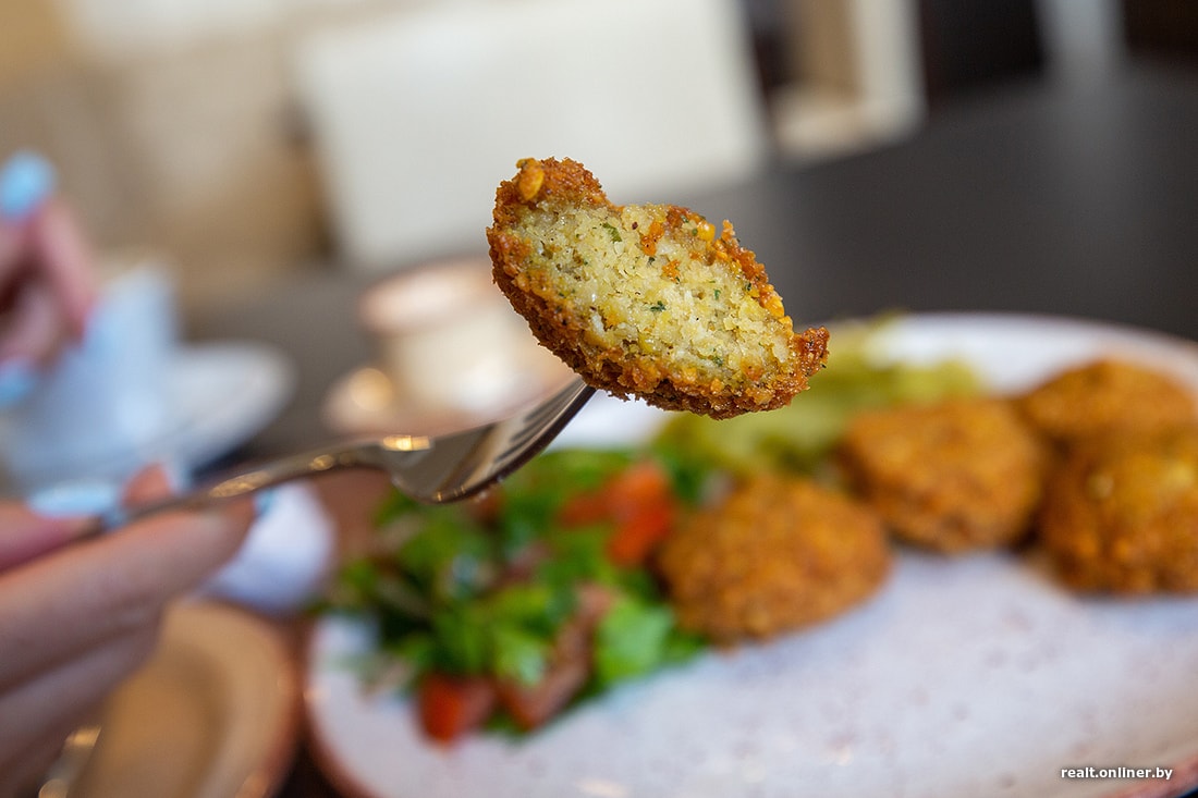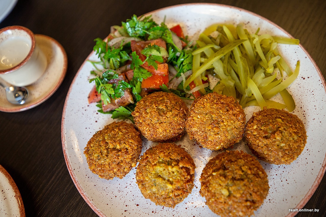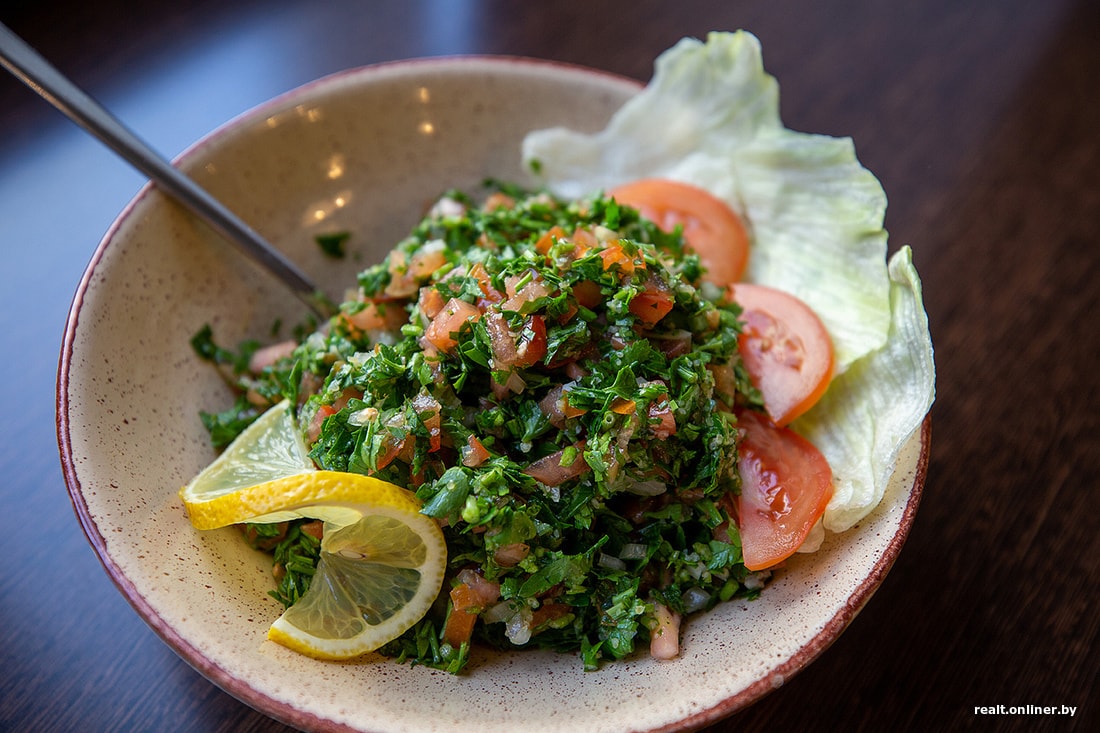 — Ливанская, израильская и сирийская кухни очень похожи, — рассказывает шеф-повар Поль Шайна. — Но в каждой стране одни и те же блюда готовятся по-разному, имеют свои особенности. В Израиле хумус бывает с авокадо, свеклой, в Ливане в хумус из нута ничего дополнительно не добавляется. В израильском салате «Табуле» много булгура, в ливанском — совсем чуть-чуть, для вкуса. Самые популярные блюда — шиш-таук, шаурма, фалафель, фатуш, кафта, самбусики… Большую роль в ливанской кухне играют приправы. Все ингредиенты мы покупаем в Беларуси.