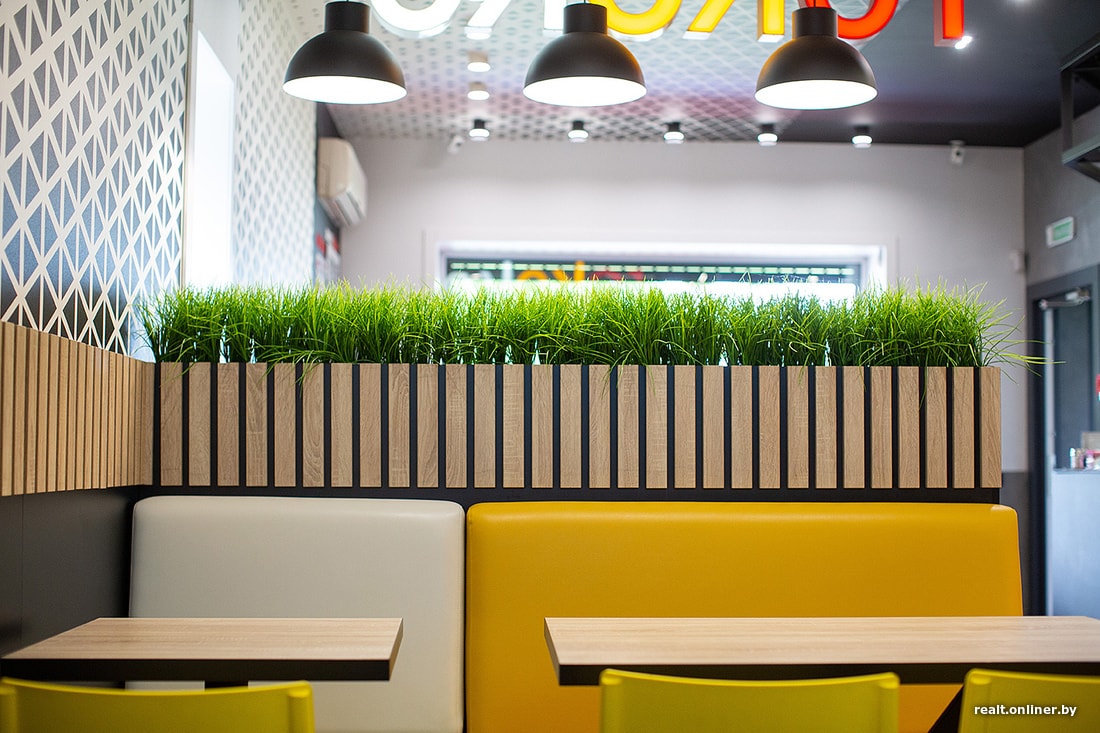 Помещение яркое, небольшое, наполненное запахами быстрой еды. Но если хочется свежего воздуха, можно выйти на небольшую террасу с видом на проспект.