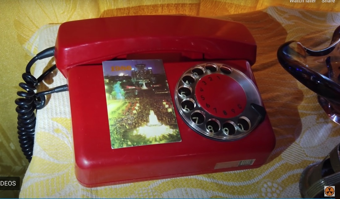 Расставили предметы интерьера советских времен: телефон, часы, книги, открытки.