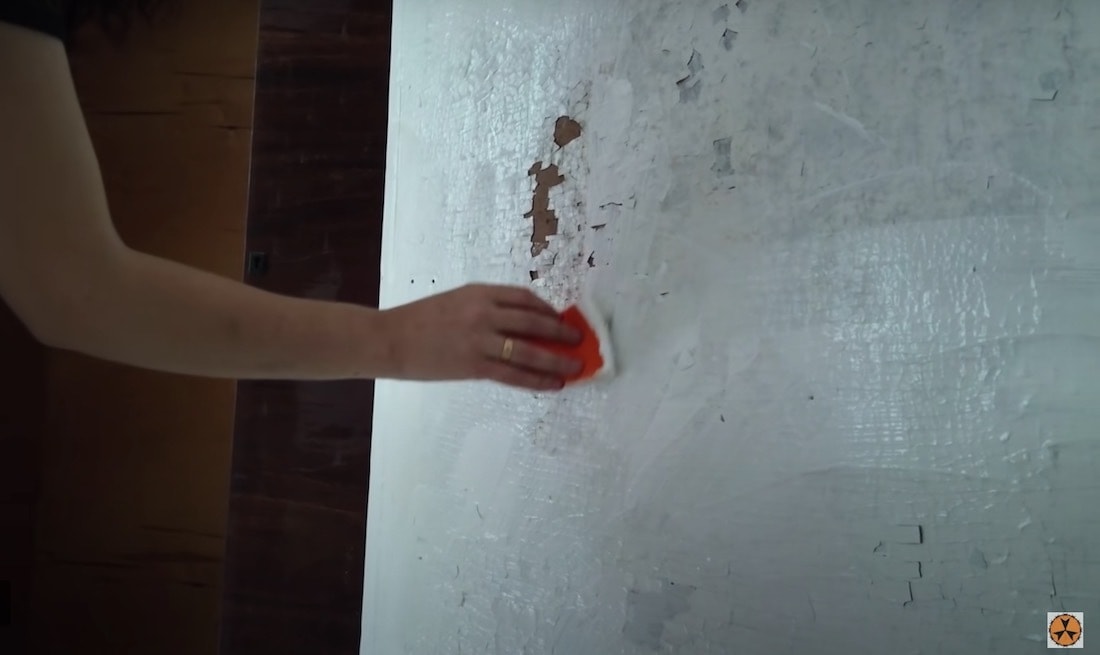 Приклеили отставшие обои, перекрасили деревянную дверь и оконные откосы прямо по осыпающейся краске.