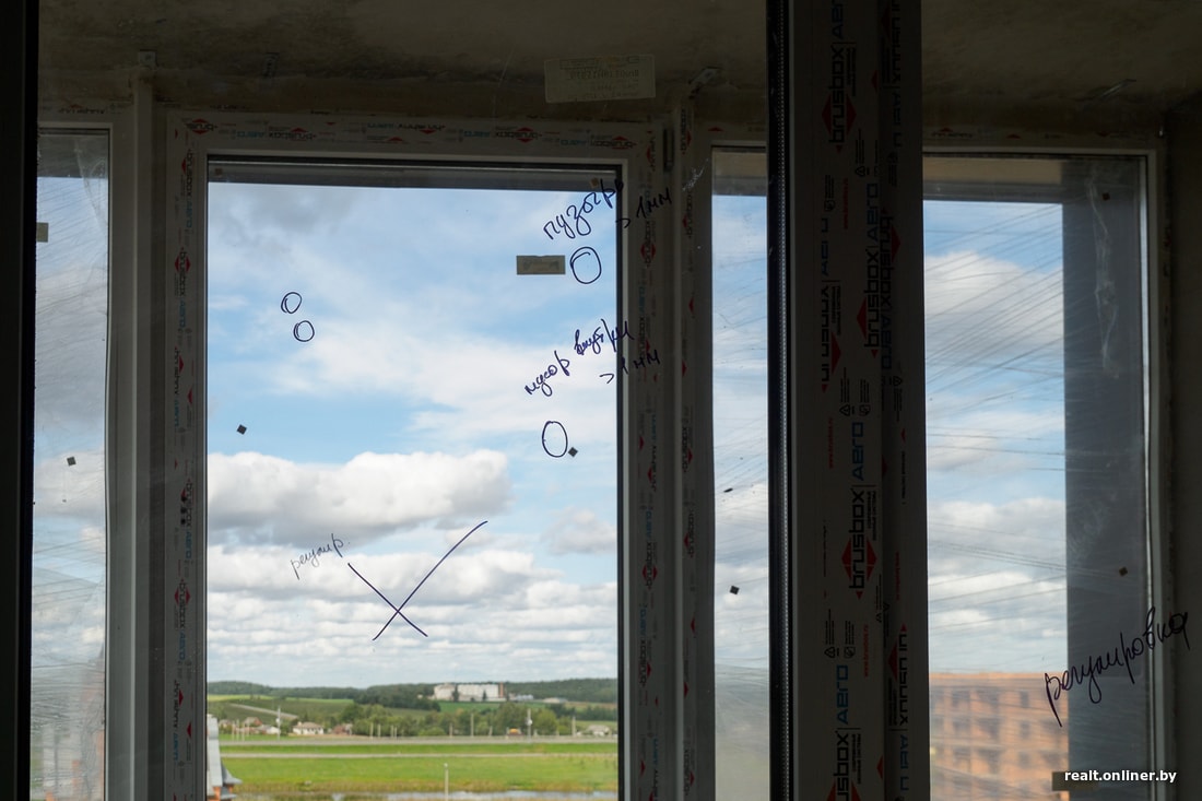 Покалеченные окна — спутники почти всех новостроек. Так как в «Новоселье» мы попали на предприемку, освободить от защитной пленки удалось не все стеклопакеты. Поэтому хозяевам надо будет внимательно осмотреть некоторые секции позже, когда застройщик откроет все «тайны». А пока имеем такой результат: не хватает заглушек и других декоративных элементов, два стеклопакета под замену (с заводским браком), в отдельных случаях необходима регулировка и работа с уплотнительными резинками.