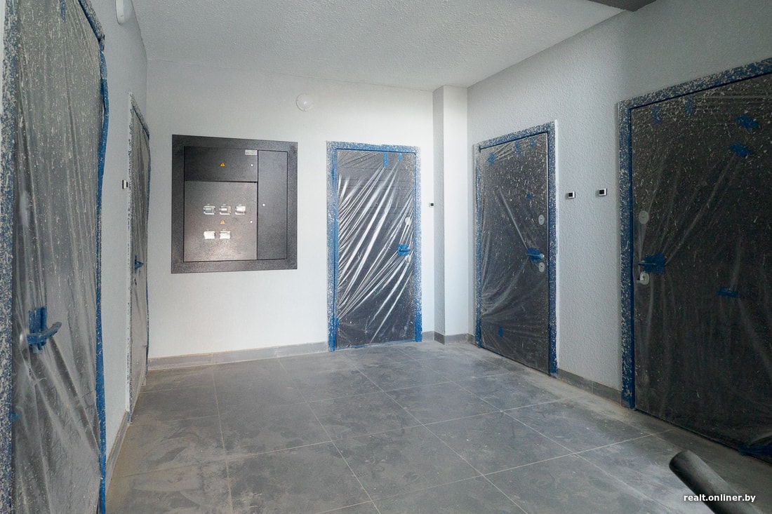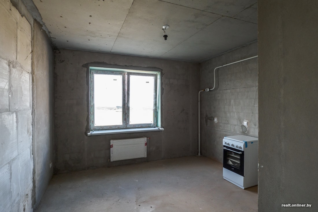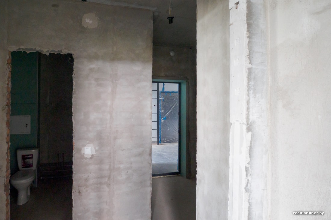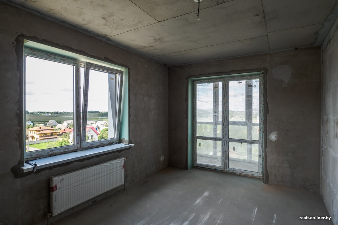 Серые стены, прямоугольники окон, «картонные» входные двери — все квартиры в новостройках кажутся одинаковыми, что там изучать? Да и о чем говорить, пока ремонт не сделан и хозяева не вдохнули настоящую жизнь в свою дорогостоящую «коробочку». Однако это только на первый взгляд. При неудачном стечении обстоятельств даже скромная студия способна изрядно потрепать кошелек новоселов — попробуй переделай за свой счет кривую стяжку, отслаивающуюся штукатурку и прочие строительные сюрпризы. Чтобы брак не прошел, а вы заранее представляли, чего можно ждать от каждого крупного застройщика, Onliner вместе с компанией «Эво Лэнд» от и до проверяет квартиры в различных ЖК. Сегодня в наш объектив попала однокомнатная квартира, расположенная за пределами Минска — в агрогородке Новоселье. Десять минут на машине от МКАД — и мы у цели: посреди небольшого населенного пункта, рядом с симпатичной пятиэтажкой.