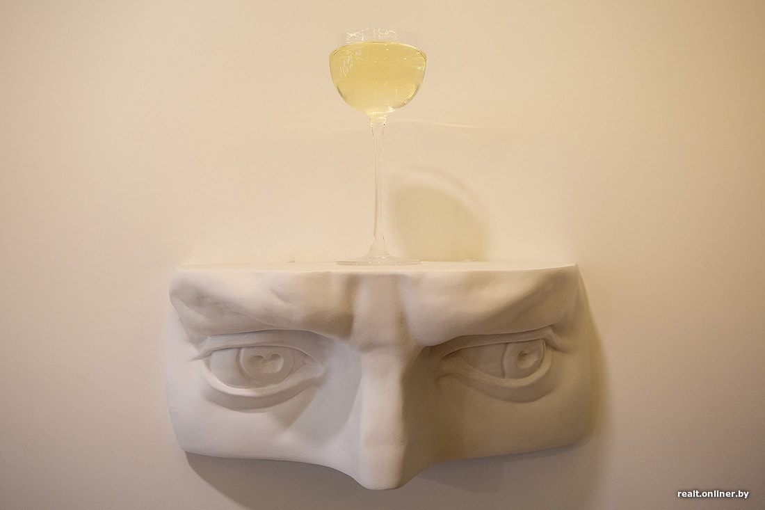 Барная стойка и стеллажи за ней выполнены из французского антиквариата 1840—90-х годов. Мы реально привезли мебель из Франции: пилили ее и плакали, создавая стенку бара. Потом добавили в интерьер ультрасовременные моменты. Ключевая деталь в заведении — это фигуры из заставки «Мосфильма», на которые мы нацепили шлемы Дарта Вейдера. Они, конечно, утрированные, стебные.