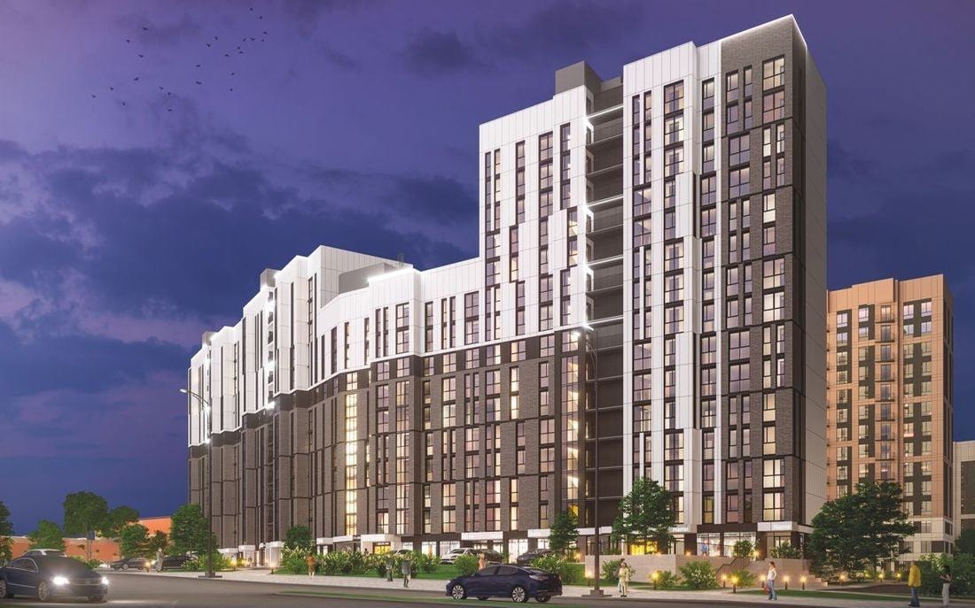 Первую очередь из четырех секций застройщик планировал сдать в конце 2020 — начале 2021 года и тогда же запустить продажу квартир. Но сегодня уже очевидно, что вместо четырех подъездов сданы будут три, пусть и с опережением графика. Построить четвертую секцию мешает неснесенный дом.