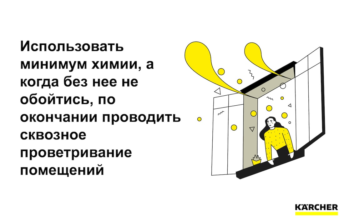 Оптимально, если во время уборки с применением химии ребенок будет находиться на улице (даже не в другой комнате). По ее окончании необходимо провести сквозное проветривание помещений.