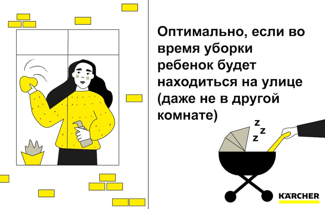 Премудростям домашней уборки не обучают в школах и университетах: знания о том, как подметать, пылесосить, мыть, вытирать пыль, передаются от старших младшим и очень редко претерпевают изменения. Сложившаяся в каждой семье система кажется вечной и нерушимой, да и что там мудрствовать — как-то ж наводили порядки всю жизнь, не зарастали грязью. Однако, как и у каждого дела, у процесса уборки есть свои секреты, способные облегчить быт и сократить время, которое приходится отводить на это монотонное занятие. Вместе с компанией Karcher мы подготовили несколько полезных текстов, которые помогут вам наводить порядок быстрее и веселее. Сегодня разберемся, что и как надо делать, чтобы в квартире, где есть младенец, всегда было свежо и чисто.