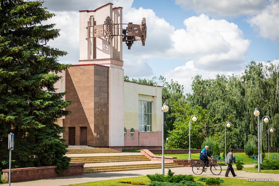 В середине 1960-х для этой задачи был привлечен архитектор Георгий Заборский, которого вы можете знать по зданию Суворовского училища, аэровокзала Минск-1 и обелиска на площади Победы в Минске. Вместе с рядом ведущих специалистов Заборский должен был спроектировать новую советскую деревню: удобную для жизни, художественно выразительную и экономически продуктивную. В числе таких был и поселок Сорочи, на въезде в который мы сейчас находимся.