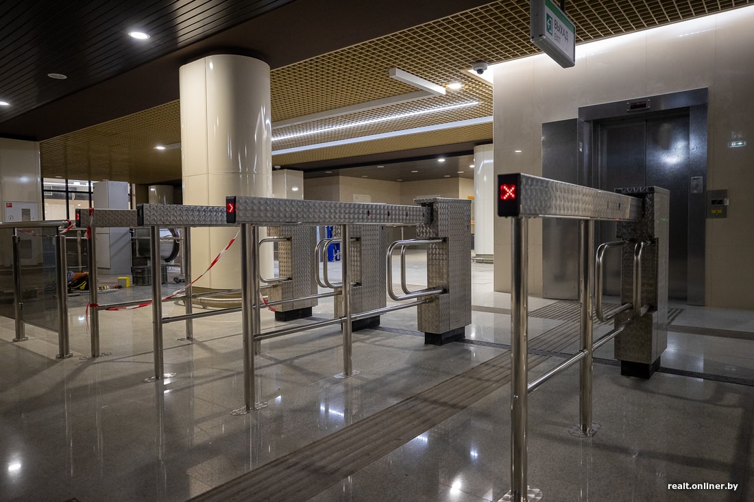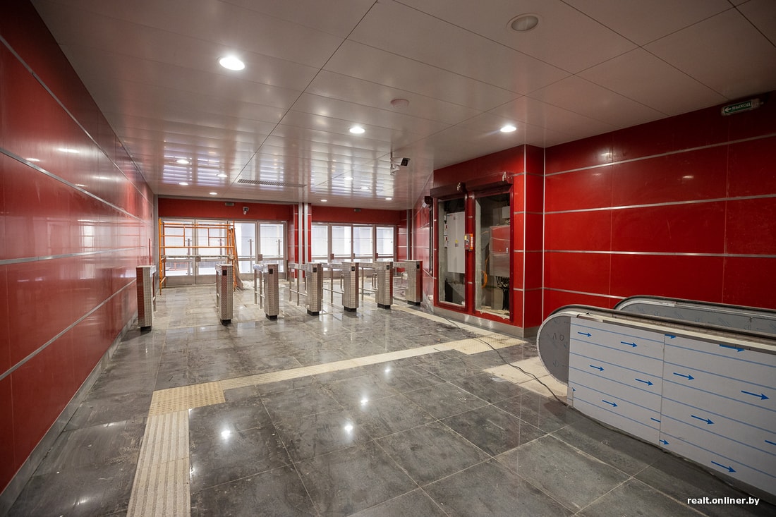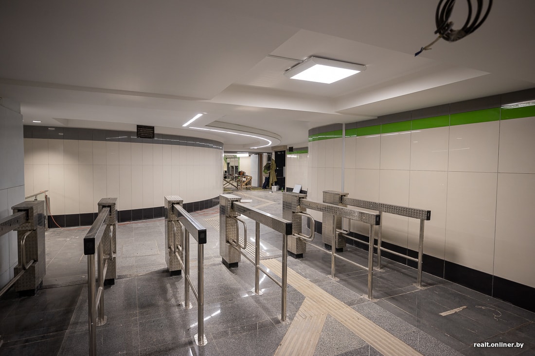 Самая «лайтовая» в строительно-техническом плане станция (спряталась под землю на глубину всего 10—14 метров) выглядит уже готовой: разве что полы помыть осталось, и все — можно принимать гостей.