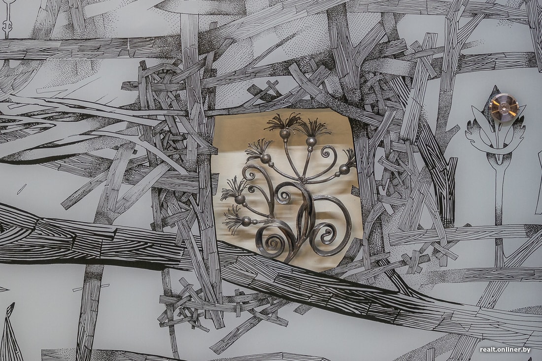 Учитывая количество кованых элементов, можно сказать, что «Ковальская слобода» на сто процентов оправдывает свое название. Помимо заметных с первого взгляда элементов на ограждении и массивных светильников, в первом от входа панно есть «окна с сюрпризом» — что-то вроде секретиков, которые делали девочки, пряча под закопанное в землю стекло цветы, листья, фантики. Что называется, найди все, пока ждешь поезд.