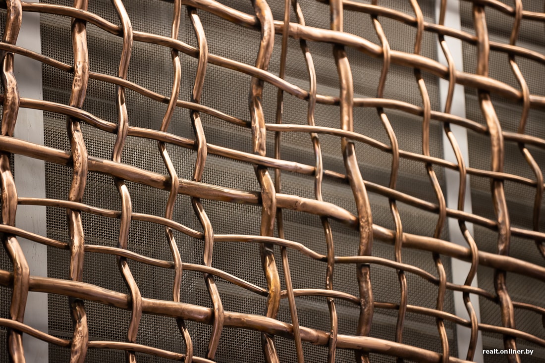 В начале января «Ковальская слобода» встречала нас строительными лесами, шумом и десятками людей в спецовках. Тогда было крайне сложно разглядеть эстетический замысел: неброские коричневые стены, потолки без светильников — поди разбери, что хотел сказать автор. Зато теперь абсолютно все стало на свои места: довольно темный цвет стен, который мог вызывать вопросы, выступает в качестве фона для главного — металлических кованых изделий и абстрактных рисунков на стеклянных панно.