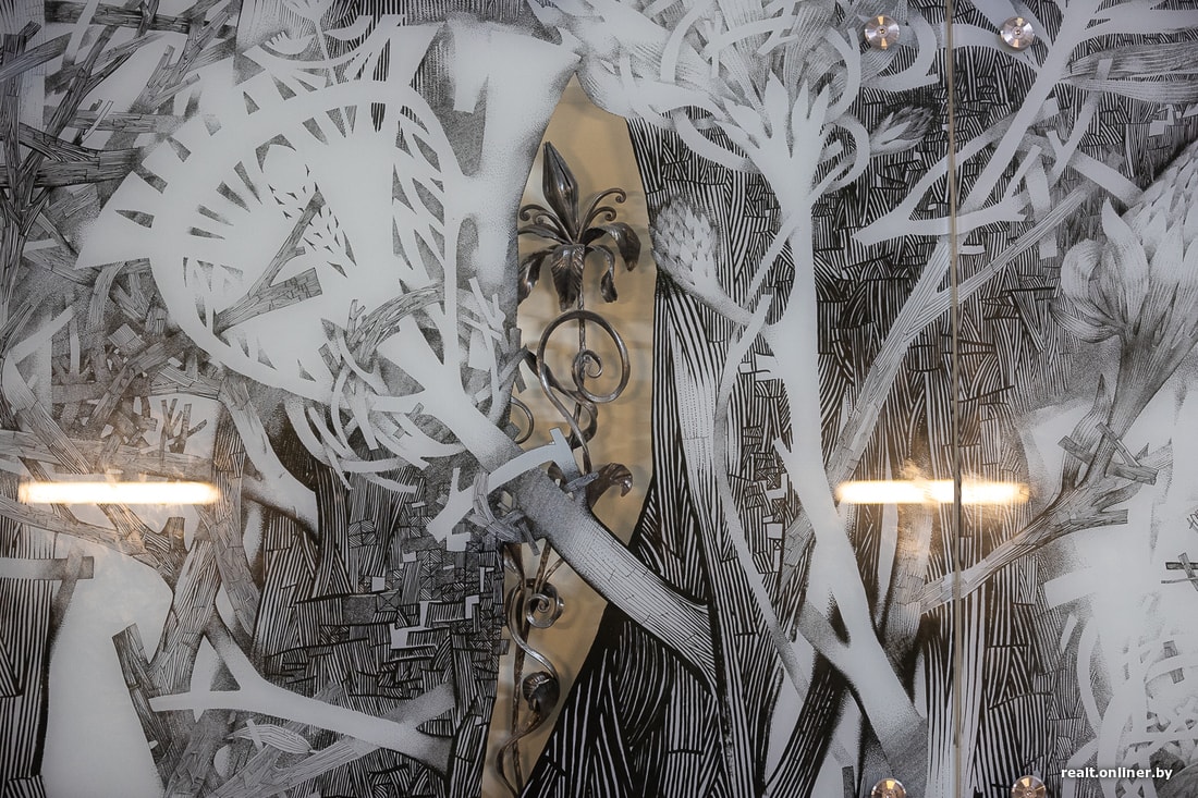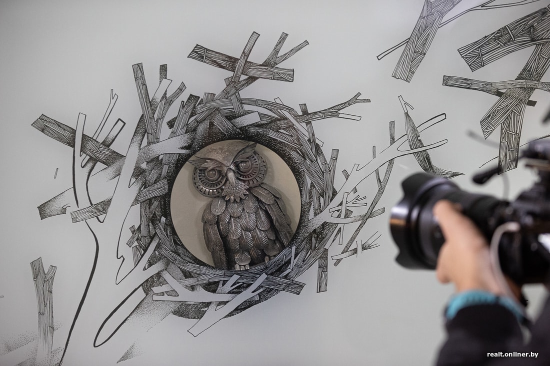 Если смотреть на «Ковальскую слободу» снаружи, с улицы, то можно отметить довольно лаконичные входы-«ракушки». А вокруг — широкие улицы, вершины новостроек «Минск-Мира», потоки автомобилей, спешащих в разные концы города.